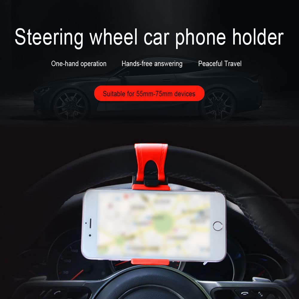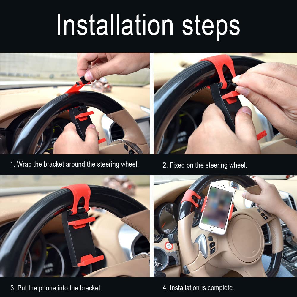 – Fácil de Instalar: O suporte possui uma faixa de fixação de aproximadamente 3 polegadas. Para instalá-lo, basta posicionar a faixa acima do volante, fixá-la no gancho na parte superior do suporte e, em seguida, ajustar o ângulo e prender o celular após a instalação.