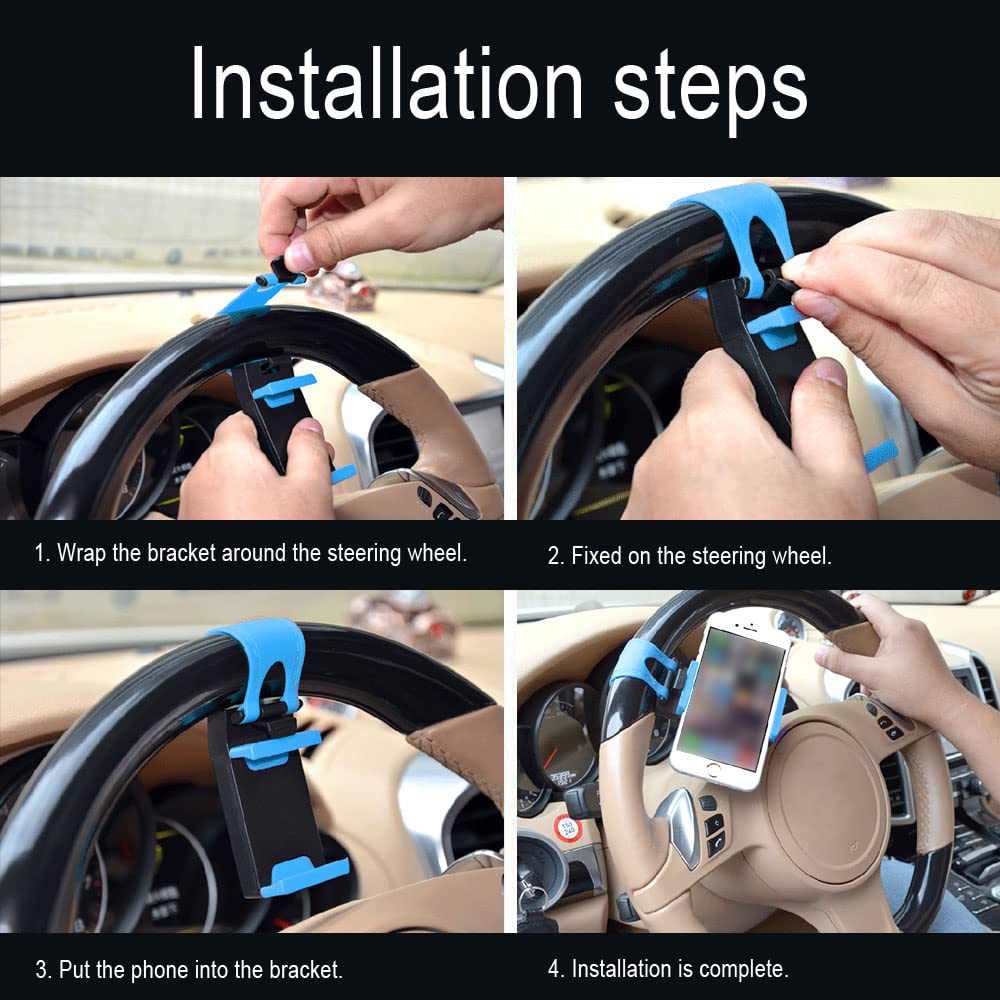 – Fácil de Instalar: Com uma faixa de fixação de cerca de 3 polegadas, a instalação é simples. Basta posicionar a faixa acima do volante, fixá-la no gancho do suporte e ajustar o ângulo antes de colocar o celular.