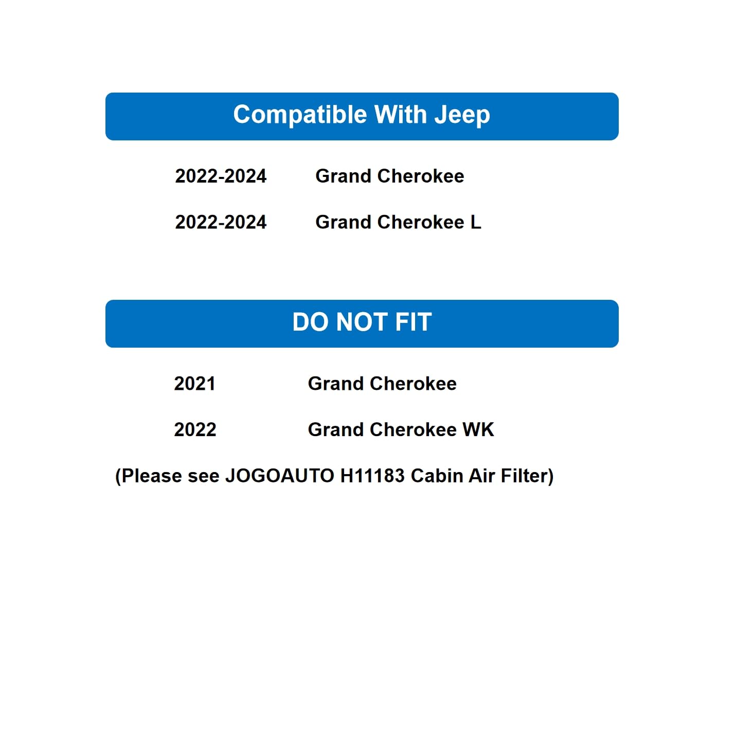 – Compatibilidade: Projetado para Jeep Grand Cherokee (2022-2024) e Grand Cherokee L (2021-2024). Não compatível com 2021 Grand Cherokee e 2022 Grand Cherokee WK.