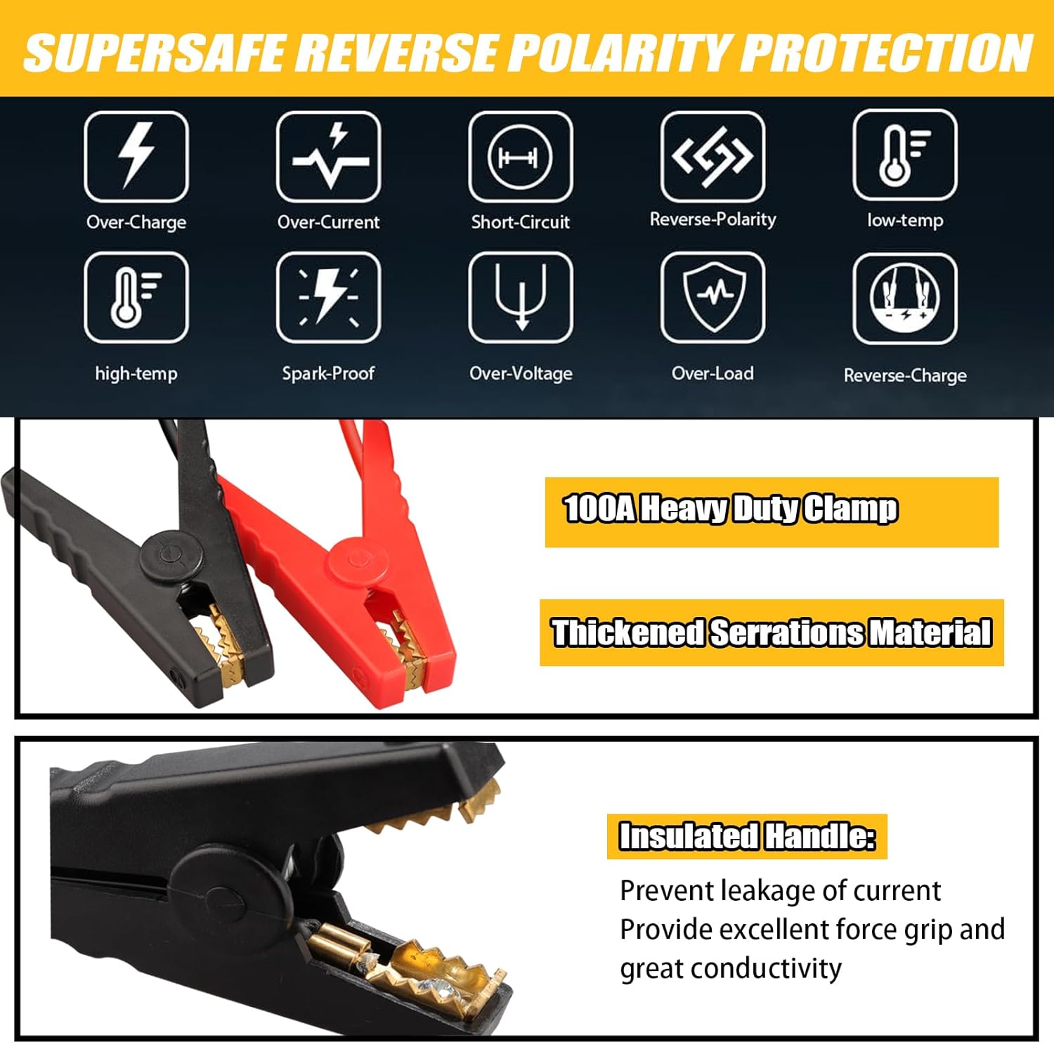 Este iniciador automotivo é equipado com um ventilador compacto e é fabricado em cobre puro, o que melhora a condutividade e a segurança. O produto oferece proteção contra curto-circuitos, sobrecarga, subcarga, superaquecimento e outras situações que podem comprometer a integridade do sistema elétrico do veículo.