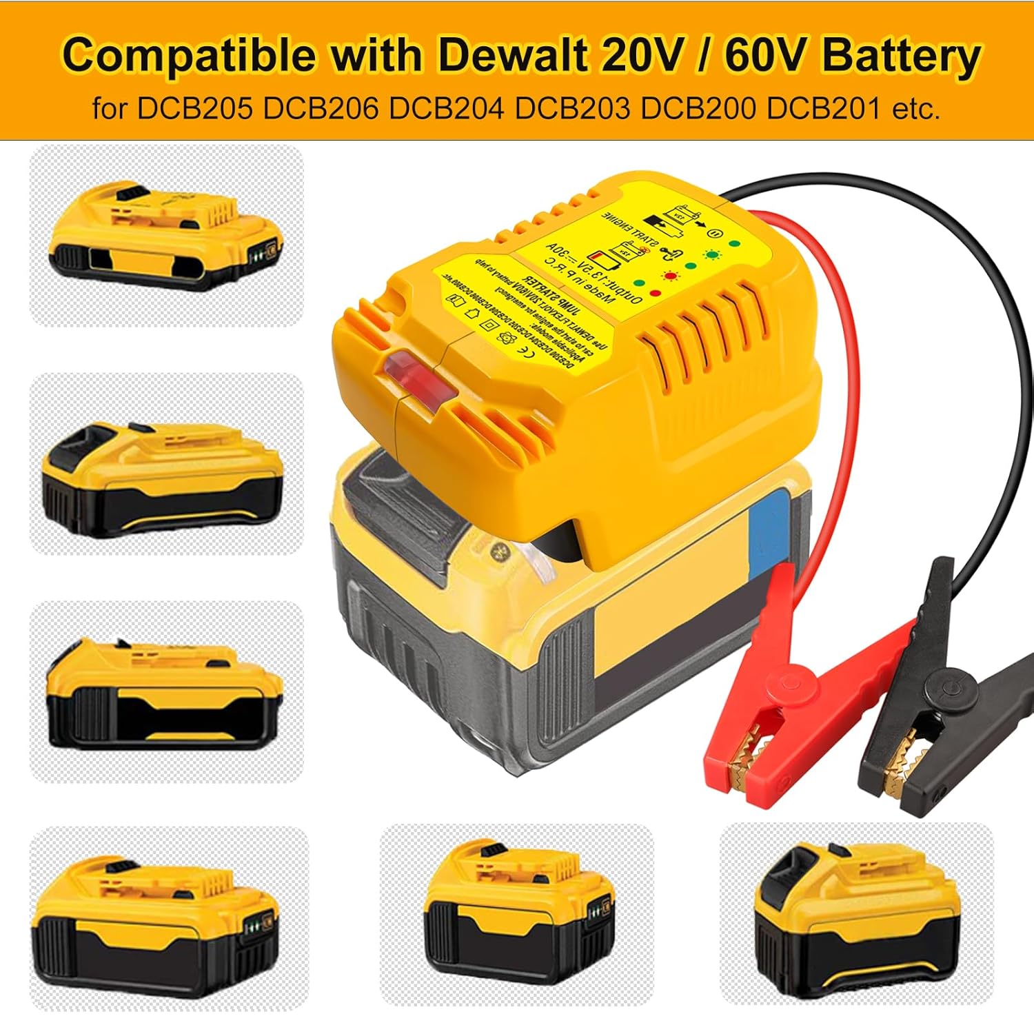 Garras de Cabo de Bateria Pesada para Bateria DeWalt 20V – Conversor para Iniciador Automotivo com Cabos 11AWG e Clipes Parrot para Carregamento Rápido