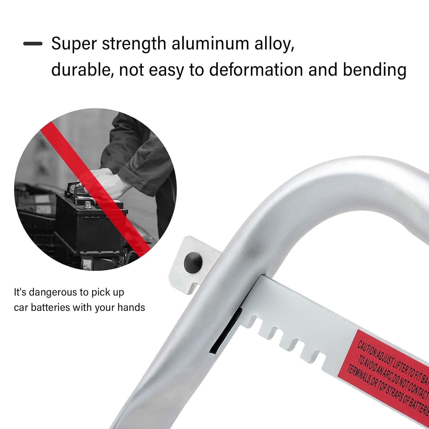 Material Durável: Fabricado em material de ferro com superfície galvanizada, o Heavy Duty Car Battery Carrier é altamente resistente e à prova de ferrugem. Sua estrutura robusta não se deforma ou dobra facilmente, suportando até 100 lbs de baterias de postes superiores e laterais, garantindo durabilidade e segurança.