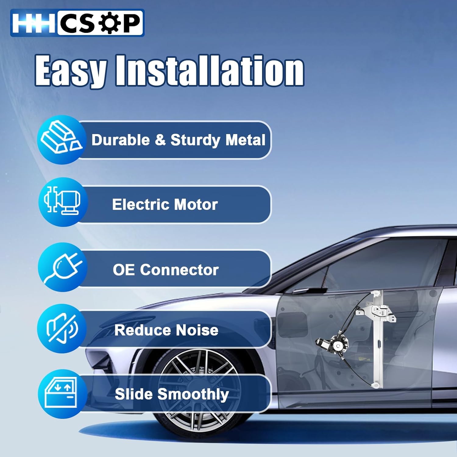 – O conjunto do motor do regulador de janela HHCSOP é fabricado de acordo com os padrões OE, garantindo uma substituição direta e sem complicações. Com este regulador, a janela do lado do passageiro se moverá para cima e para baixo de forma mais rápida e suave, proporcionando uma experiência de uso superior.