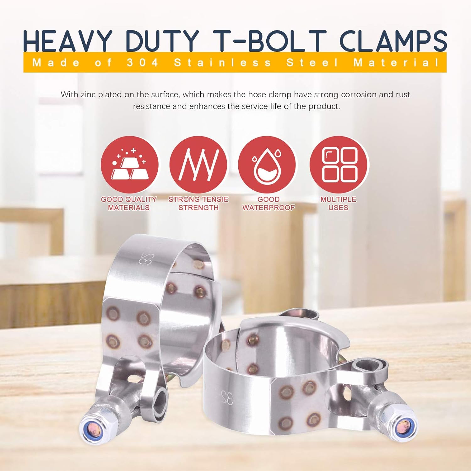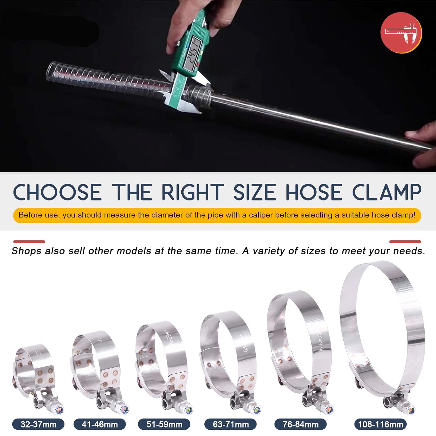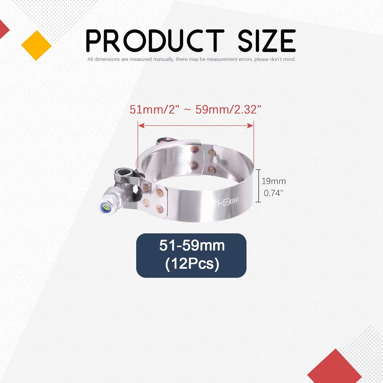 Descrição do Produto: Hilitchi 12PCS Stainless Steel T-Bolt Clamps com Borda Arredondada para Turbo Intake Intercooler (51-59MM)