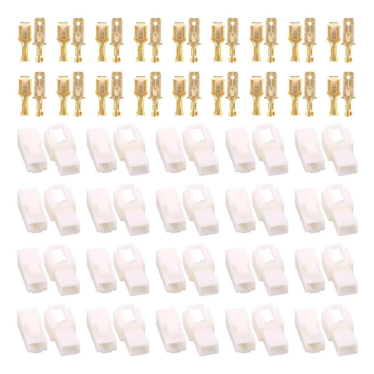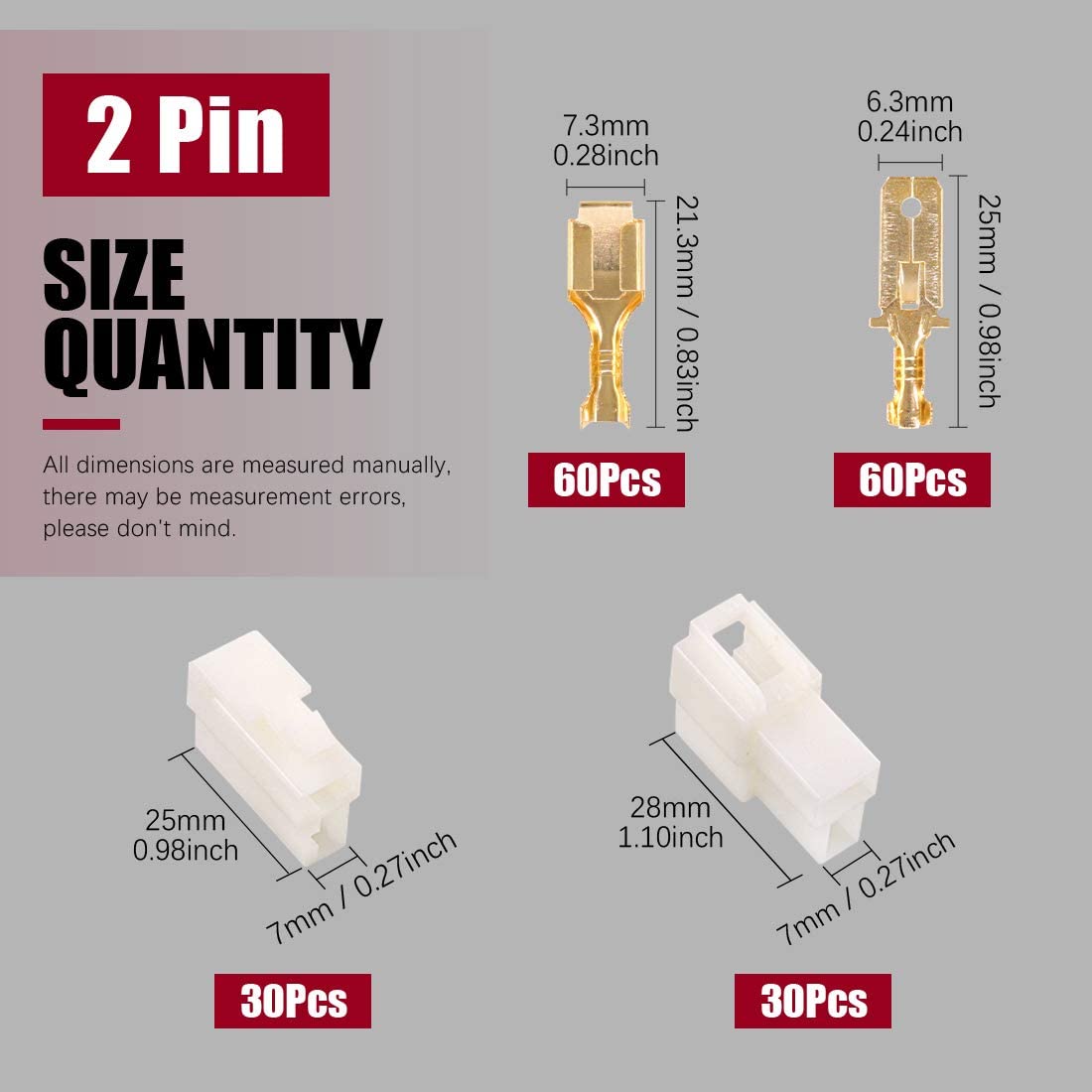 O pacote contém uma variedade de especificações, incluindo conectores macho e fêmea de 1, 2, 3, 4, 6, 8 e 9 pinos, permitindo que você tenha sempre a peça certa à mão. A instalação é facilitada pelo design com gancho fixo, que torna o processo de crimpagem simples e rápido. Basta inserir os terminais na ferramenta apropriada e pressionar, garantindo que a isolação esteja completamente ajustada ao fio. Os terminais de 2.8 mm são compatíveis com cabos de até 2.0 mm de diâmetro, permitindo uma conexão segura e confiável.