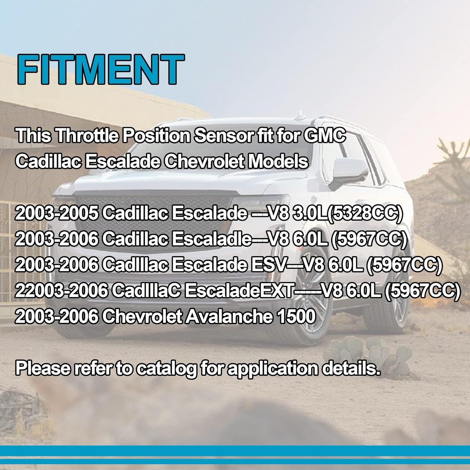 Este sensor de posição do acelerador (TPS – Throttle Position Sensor) é compatível com diversos modelos de SUVs, caminhonetes e veículos comerciais, incluindo Buick Rainier (2004), Cadillac Escalade (2003-2006), Chevrolet Avalanche 1500 (2003-2006), Express 1500/2500/3500 (2004-2007), Silverado 1500/2500/3500 (2003-2006), Silverado Classic (2007), SSR (2003-2004), Suburban 1500/2500 (2003-2006), Tahoe (2003-2006), além de GMC Envoy (2003-2004), Forward (2003-2007), Savana 1500/2500/3500 (2003-2006), Sierra 1500 Classic (2007), Yukon (2003-2006), Hummer H2 (2003-2007) e Isuzu Npr (2003-2007). Essa compatibilidade extensa garante que o seu veículo receba uma peça de alta performance, independentemente da marca ou modelo.