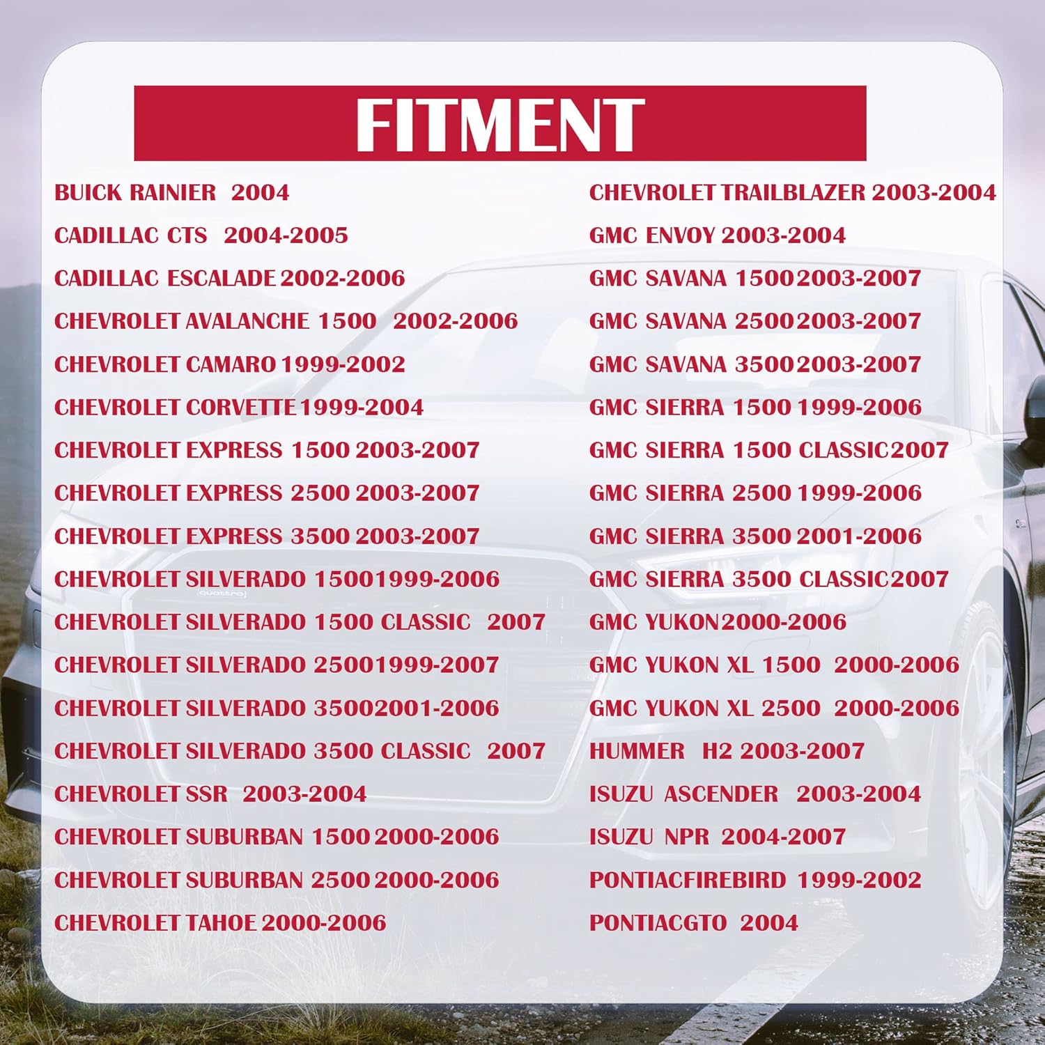 – Compatibilidade: Projetado para modelos Chevy e GMC de 1999 a 2007, com uma lista abrangente de números de peças.