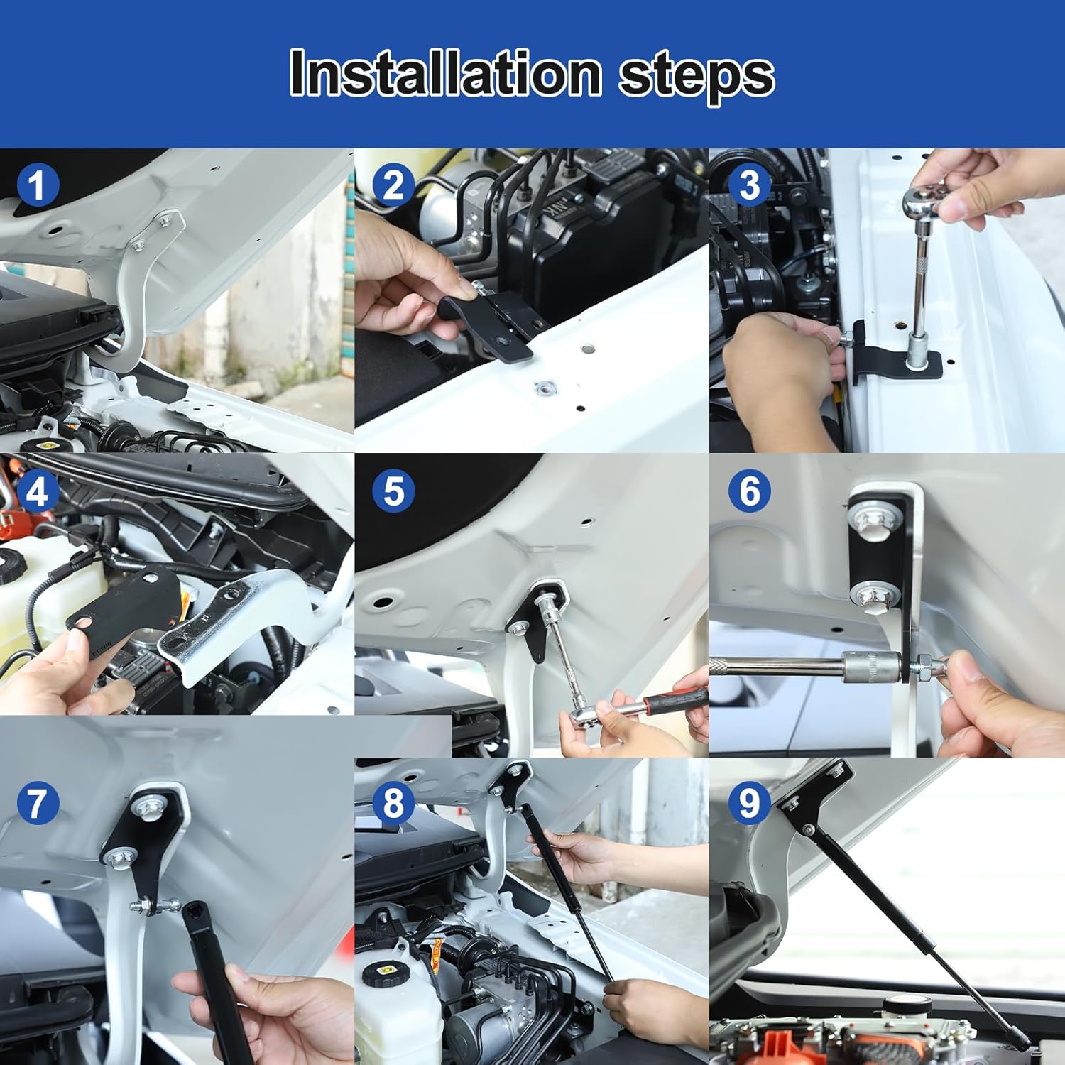 A instalação dos Suportes de Elevação do Capô é um processo descomplicado. O produto vem com todos os acessórios necessários e um guia passo a passo que permite que você realize a instalação em poucos minutos, sem a necessidade de ferramentas especializadas. Isso significa que você pode economizar tempo e dinheiro, realizando a instalação você mesmo.