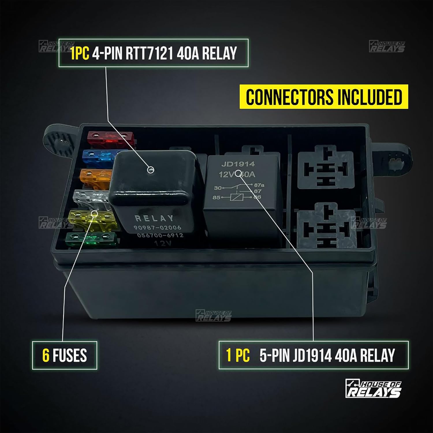A caixa de relés híbrida universal 12V da House of Relays é a solução ideal para quem busca eficiência e segurança em sistemas elétricos automotivos e marinhos. Este kit completo é equipado com um relé de 5 pinos JD1914 de 40A e um relé de 4 pinos RTT7121 de 12V 40A, além de 12 fusíveis de lâmina ATC/ATO, tornando-o perfeito para uma ampla gama de aplicações em veículos, como SUVs, UTVs, ATVs, trailers, barcos e muito mais.