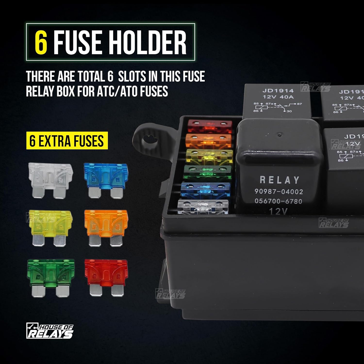 High Performance: Fabricado com uma carcaça retardante de chama, a caixa de fusíveis e relés pré-fabricada de 6 vias oferece proteção segura e eficaz para fusíveis e relés no compartimento do motor. Cada slot possui recortes precisos e uma saída em arco na borda, mantendo toda a fiação organizada e confiável, como se fosse fabricada na linha de montagem original.