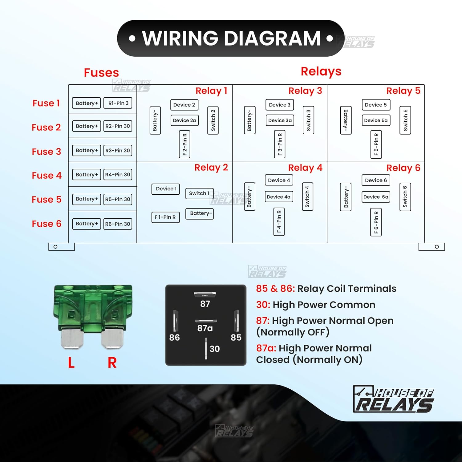 High Performance: Fabricado com uma carcaça retardante de chama, a caixa de fusíveis e relés pré-fabricada de 6 vias oferece proteção segura e eficaz para fusíveis e relés no compartimento do motor. Cada slot possui recortes precisos e uma saída em arco na borda, mantendo toda a fiação organizada e confiável, como se fosse fabricada na linha de montagem original.