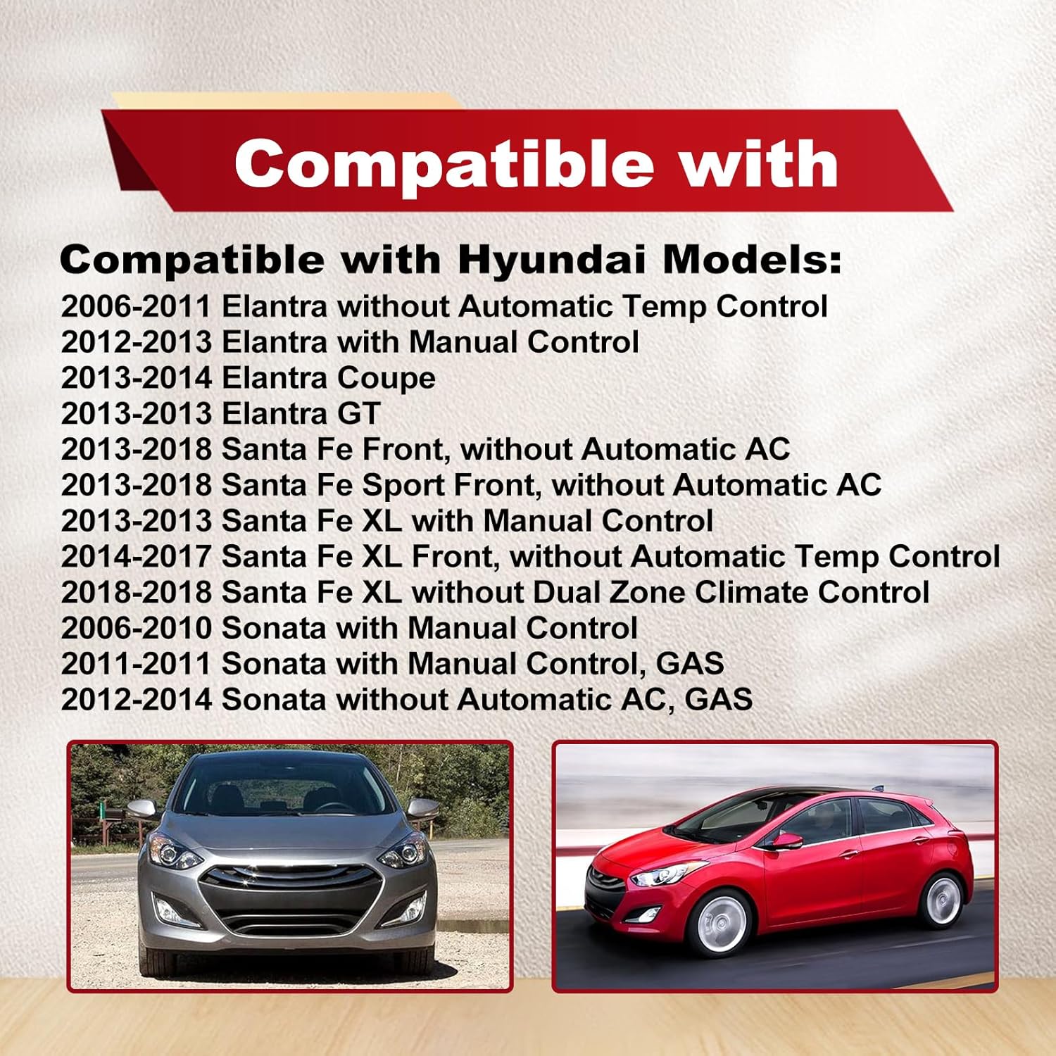 – Compatibilidade: O kit é compatível com uma ampla gama de modelos Hyundai, incluindo Elantra (2006-2013), Elantra Coupe (2013-2014), Elantra GT (2013), Santa Fe/Santa Fe Sport (2013-2018), Santa Fe XL (2013-2018) e Sonata (2006-2014). Para veículos Kia, é compatível com Forte (2014-2018), Forte Koup (2014-2017), Forte5 (2014-2018), Optima (2006-2019), Sorento (2011-2018) e Sedona (2015-2021). Verifique sempre o modelo do carro antes da compra para garantir a compatibilidade.