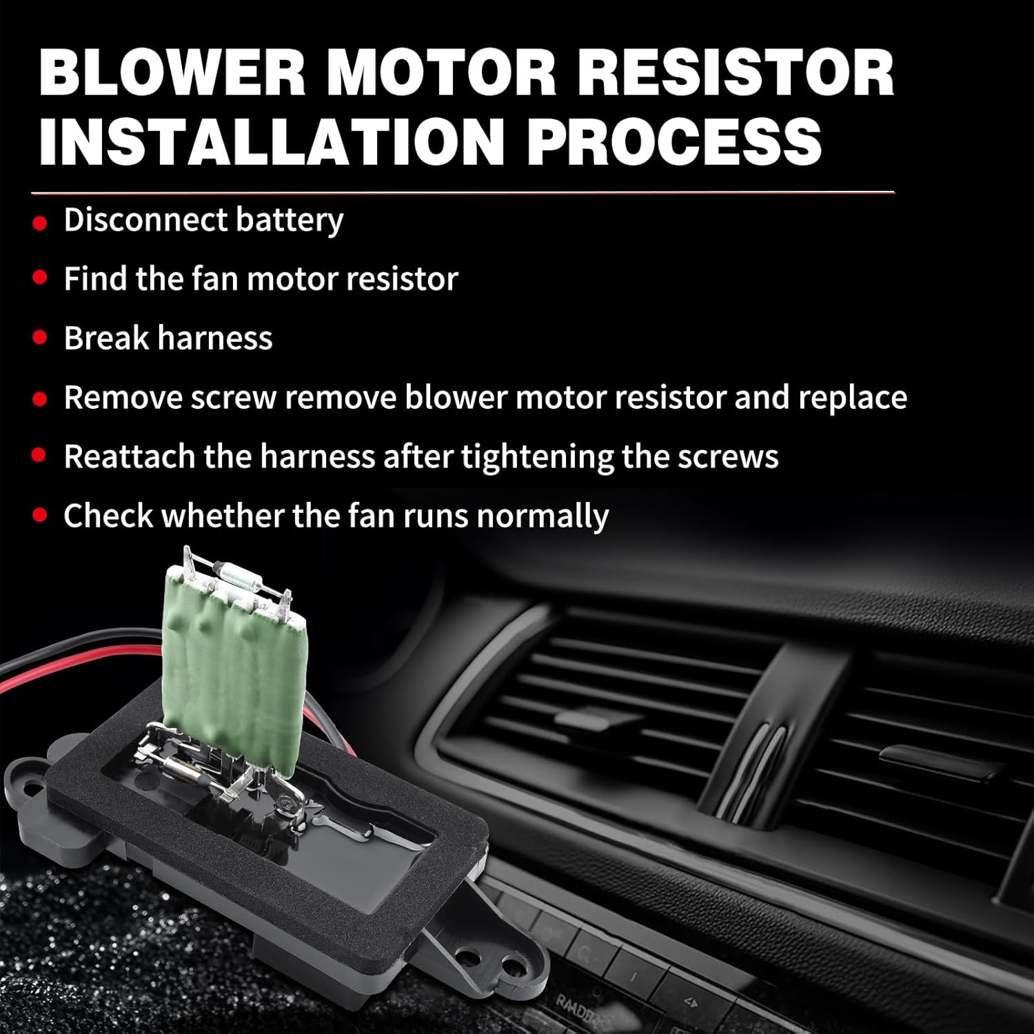 【ALTA QUALIDADE】 Nossa reputação como fabricante de peças automotivas de alta qualidade é inigualável. Todos os nossos produtos são fabricados com matérias-primas de primeira linha e passam por rigorosos testes em nosso laboratório avançado. O resistor do ventilador é uma substituição direta para o resistor de fábrica, garantindo que a qualidade do produto possa substituir completamente as peças originais (OE).