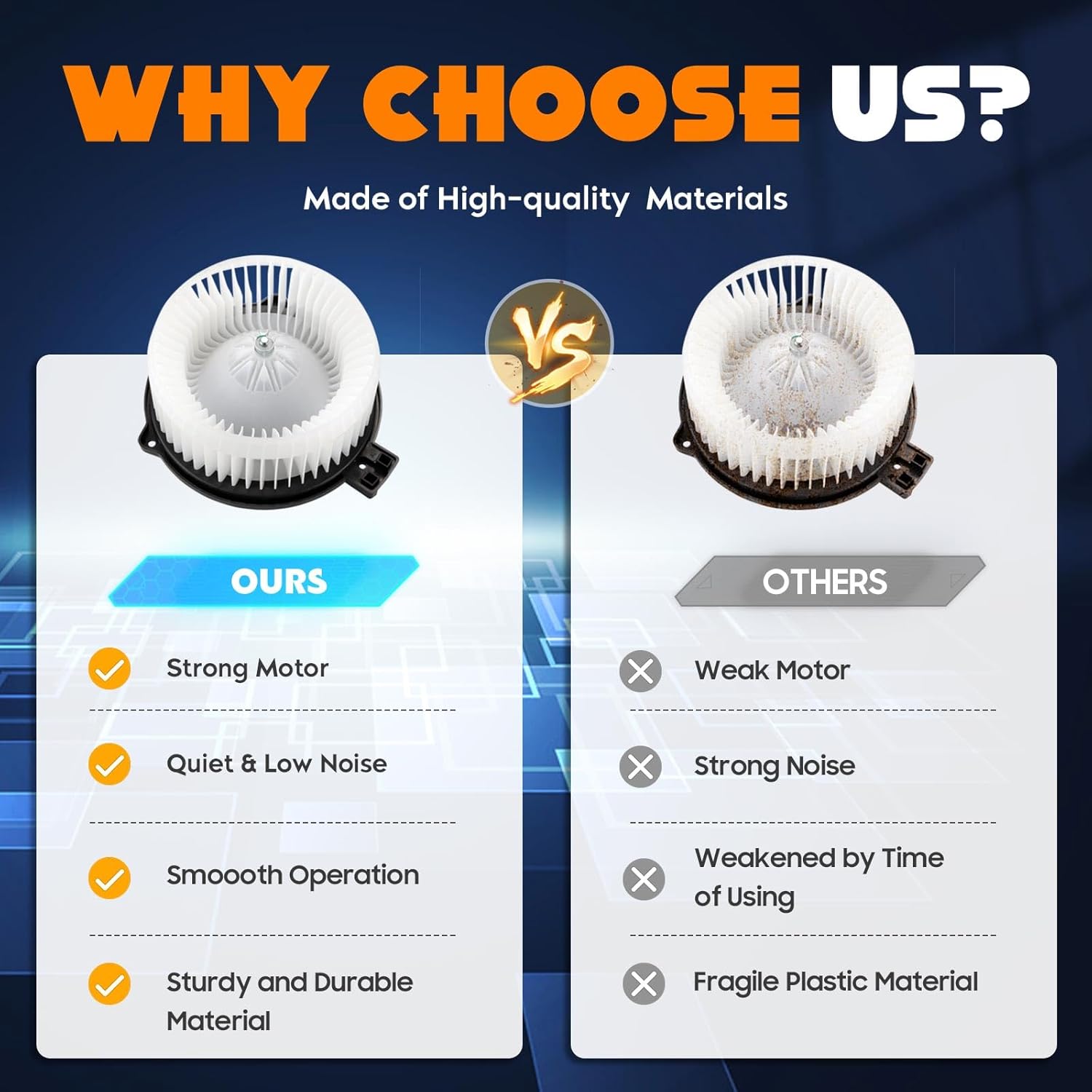 - 【Nota Importante】Verifique a descrição ou utilize a barra de seleção de ano/marca/submodelo/tipo de carroceria e números de peças intercambiáveis para confirmar a compatibilidade antes de adquirir nosso motor do ventilador. Se você tiver qualquer problema com o motor do ventilador do aquecedor, entre em contato conosco a qualquer momento!