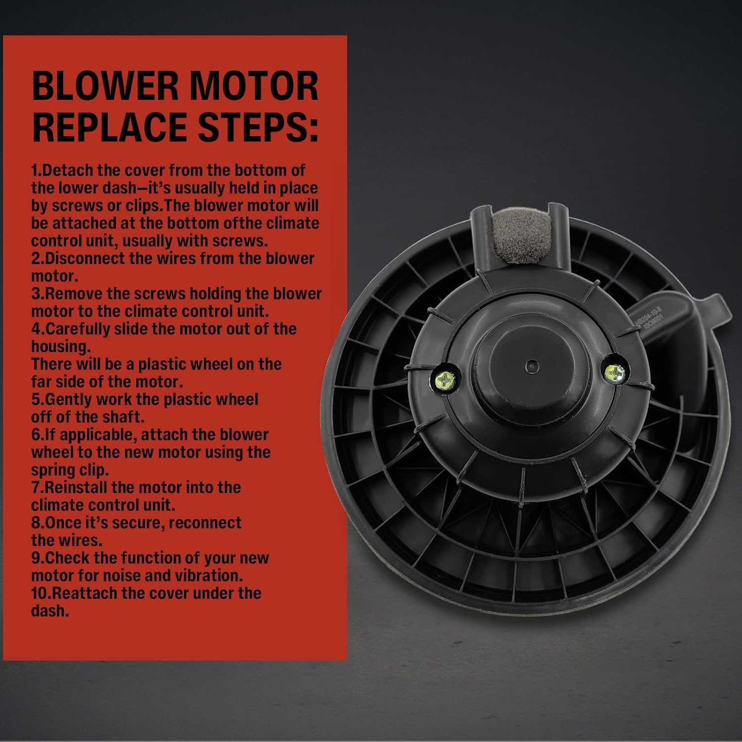 Instalação Fácil & Números de Peça: O motor do ventilador substitui os números de peça 75748, 89019320, 89019301, 89023346, 15-80387, entre outros. A instalação é simples e não requer ferramentas especiais—basta remover o motor do ventilador antigo e instalar o novo sob o painel do lado do passageiro. Para melhores resultados, recomenda-se também a substituição do resistor do motor do ventilador.