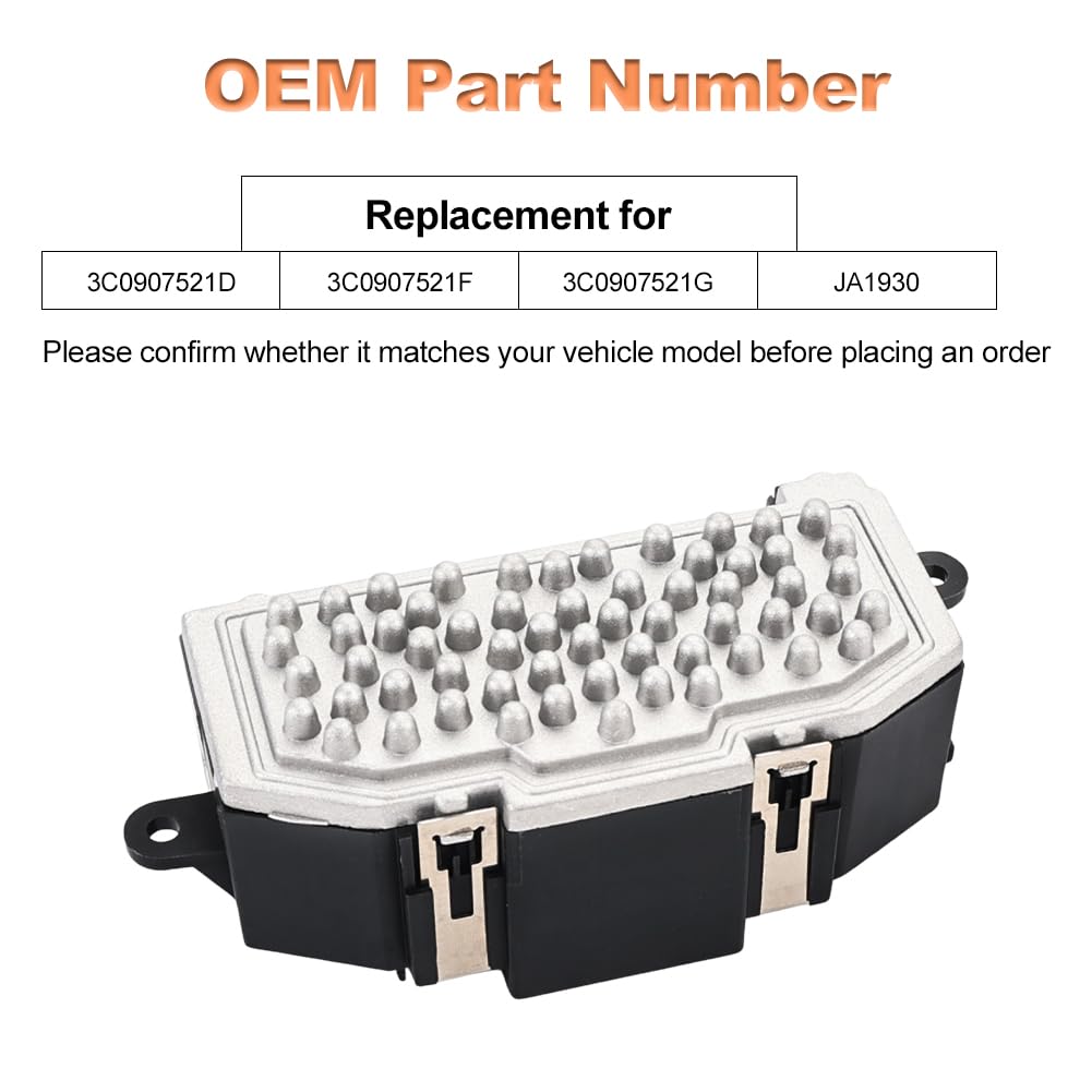• Números de Peça de Substituição: O resistor do motor do ventilador HVAC é uma substituição para 3C0907521F, 3C0907521G, 3C0907521D. Por favor, confirme se o modelo necessário corresponde antes de fazer o pedido.