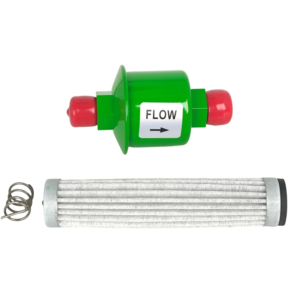 O Kit de Filtro de Óleo Hidráulico para Transmissão Hidrostática é a solução ideal para quem possui cortadores de grama John Deere 325, 335, 345 e 355. Com um design meticulosamente elaborado, este filtro garante a máxima eficiência e durabilidade do sistema hidráulico do seu trator de jardim. O número da peça do filtro de óleo da transmissão hidrostática é M806848, M806626, 19216726451 e HY90329, enquanto o filtro de óleo hidráulico da transmissão possui os números AM120916 e AM103181.