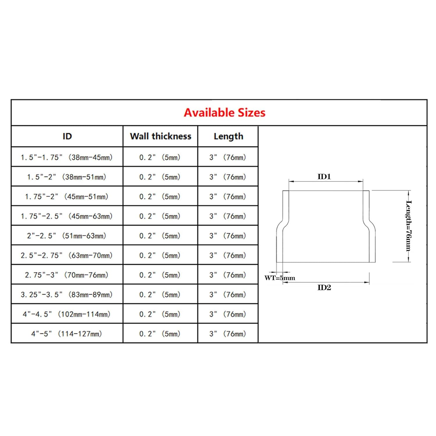 O Redutor de Silicone Haturmyko é a solução ideal para quem busca um desempenho superior em sistemas de admissão e resfriamento de motores. Com um diâmetro interno que varia de 3.5 polegadas a 4.5 polegadas (89mm a 114mm) e um comprimento de 3 polegadas (76mm), este adaptador é projetado para atender às exigências mais rigorosas de aplicações automotivas. A espessura da parede de 0.2 polegadas (5mm) garante robustez e resistência, tornando-o um componente essencial para qualquer entusiasta de automóveis.