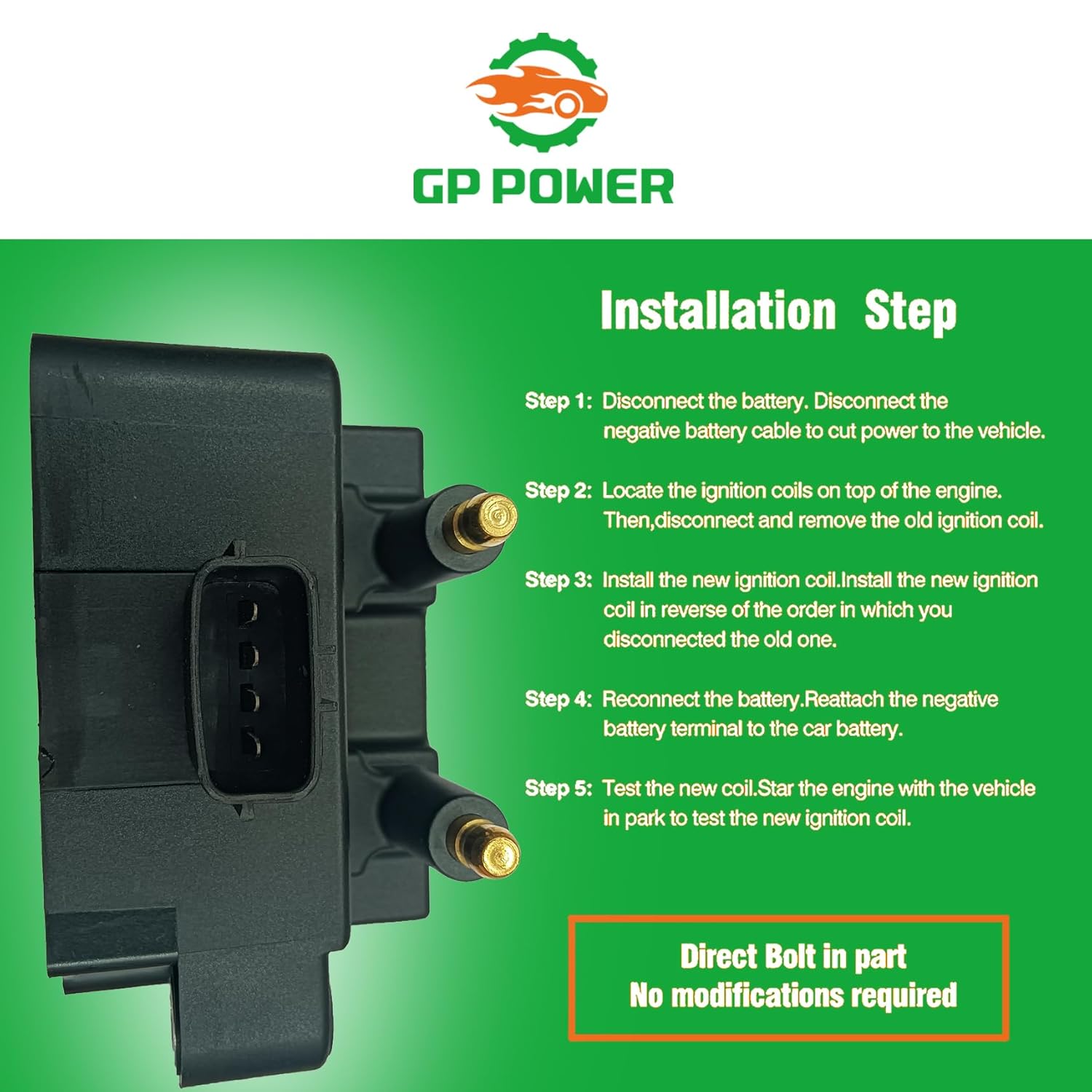 - A GP POWER utiliza a mais recente tecnologia e componentes originais (OE) para proporcionar uma qualidade excepcional que supera os requisitos OE. Nossas bobinas de ignição podem ser facilmente localizadas em ambos os lados do motor, dentro do compartimento do motor, e podem ser instaladas em minutos, permitindo que você experimente partidas de motor mais consistentes e suaves imediatamente.