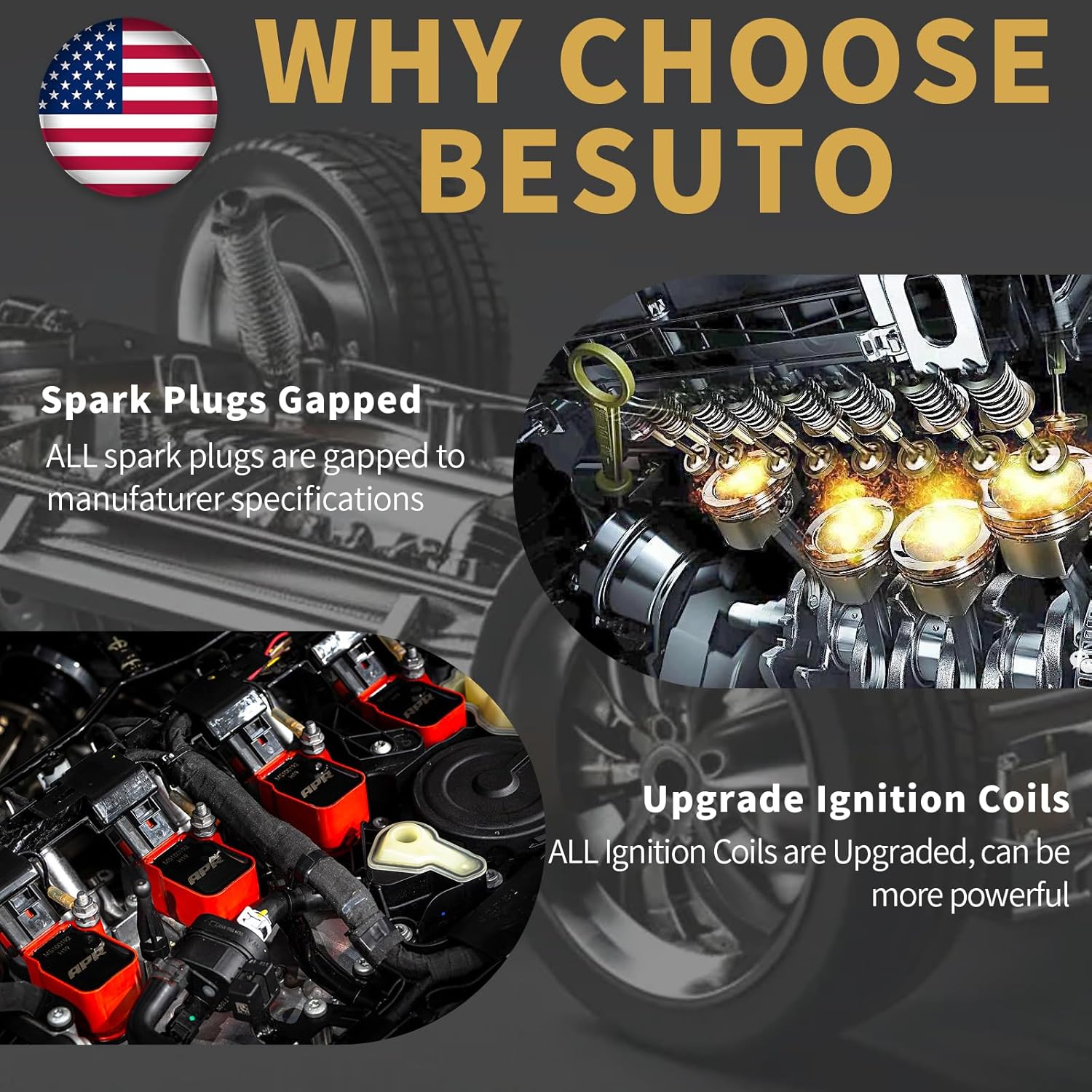 As bobinas de ignição Besuto são construídas para atender ou superar as especificações originais do equipamento (OE), oferecendo confiabilidade e desempenho elevados. O uso de fio de cobre altamente condutivo e epóxi de alto desempenho dielétrico assegura uma conectividade excelente e uma longa vida útil.
