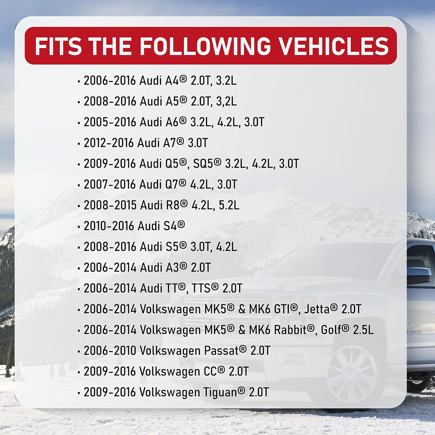 – Compatibilidade: Projetado para motores 2.0T, 2.5L, 3.0T, 3.2L e 4.2L de diversos modelos Audi e Volkswagen.