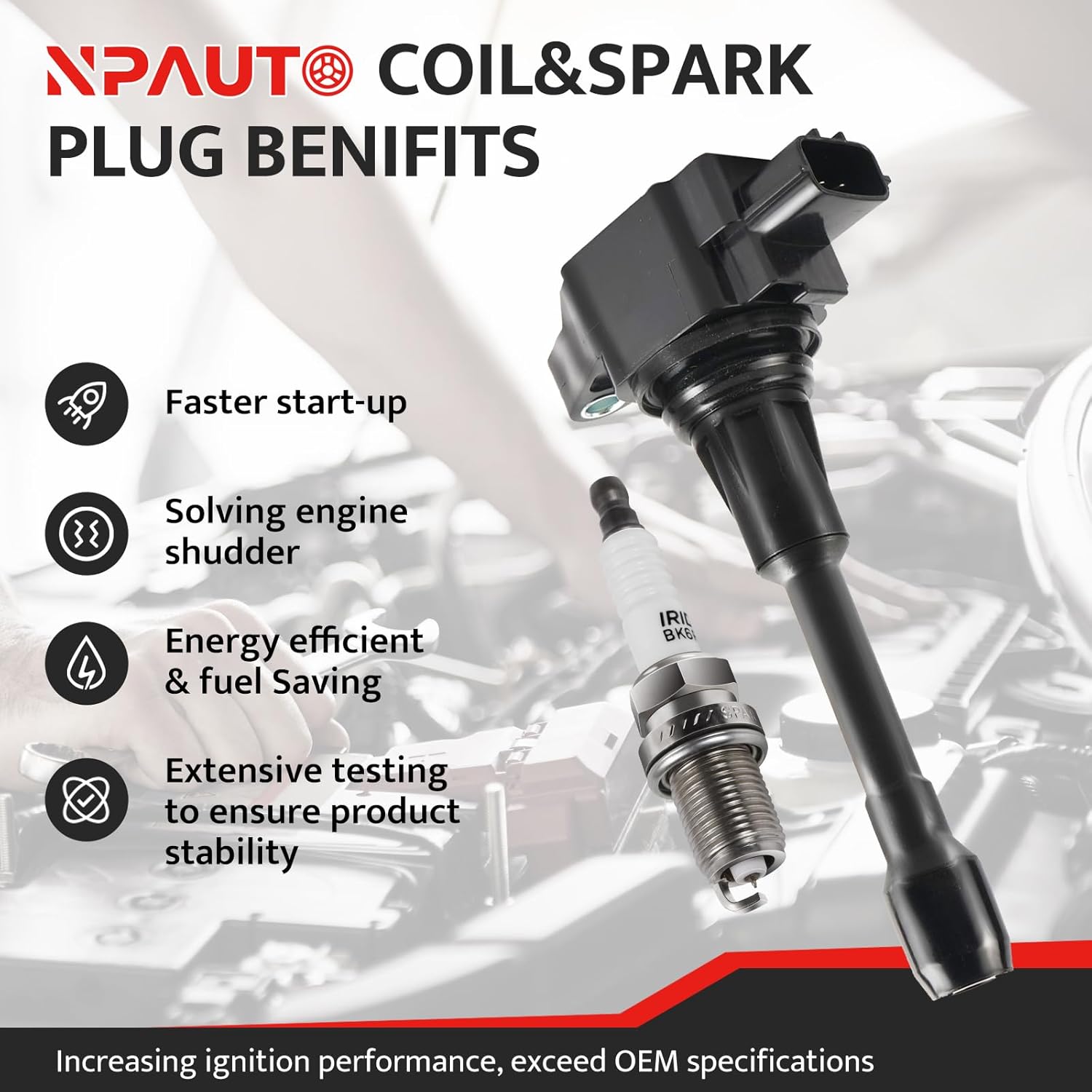 – As bobinas e velas NPAUTO são projetadas e produzidas sob altos padrões, utilizando materiais premium que atendem ou superam as especificações OEM. Este kit resolve problemas comuns causados por falhas nas bobinas e velas, como falhas de ignição, dificuldade para dar partida, marcha lenta irregular, perda de potência e baixa economia de combustível.