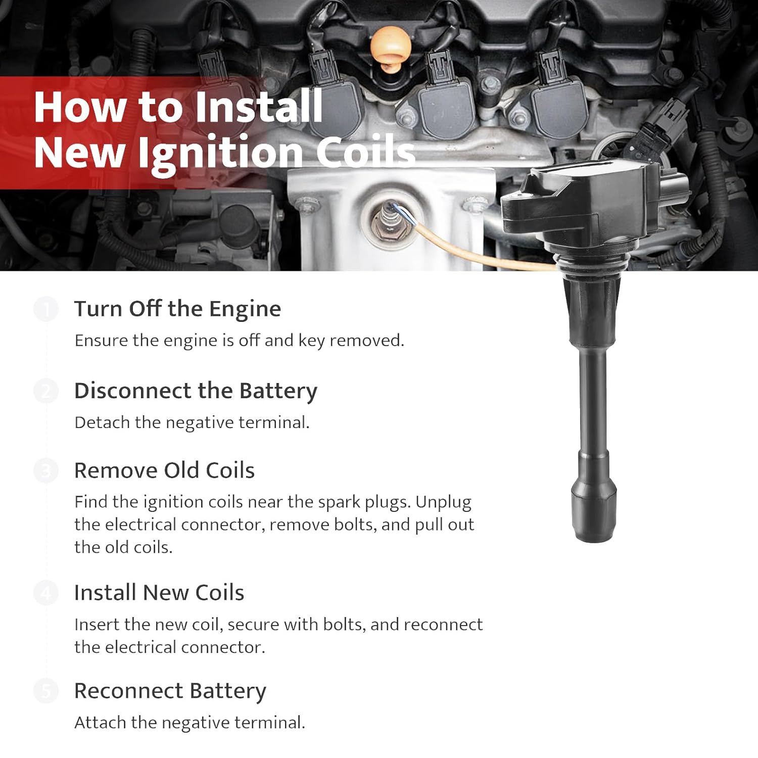 – Para um sistema de ignição mais eficiente e suave, recomenda-se substituir as bobinas de ignição e as velas ao mesmo tempo, especialmente se as bobinas falharam devido ao desgaste das velas.