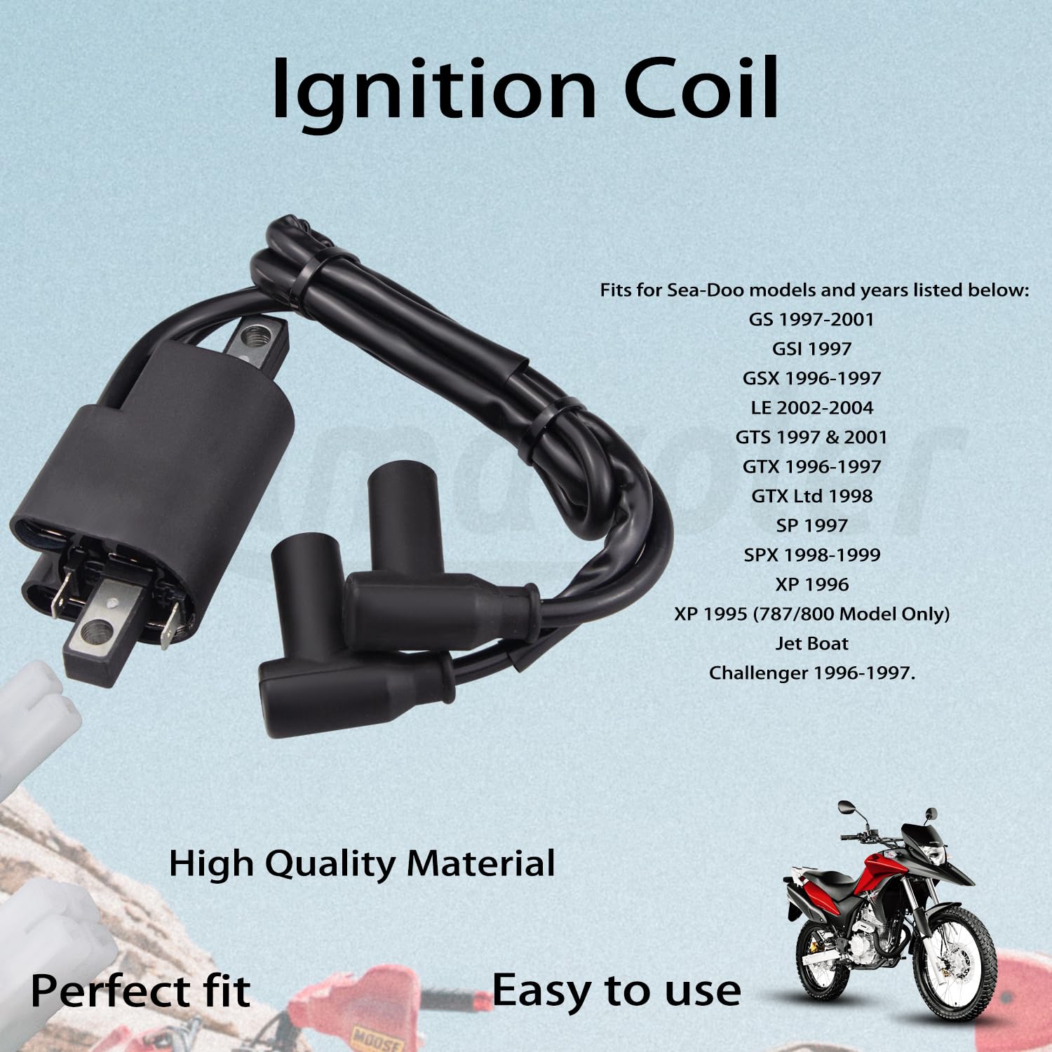 Fabricada com materiais de alta qualidade, esta bobina de ignição oferece estabilidade térmica e durabilidade excepcionais, permitindo um uso prolongado sem comprometer o desempenho. Com uma tensão de 12V, a bobina é projetada para fornecer uma ignição confiável e eficiente, essencial para o funcionamento suave do motor. A cor preta e a combinação de metal e plástico garantem não apenas resistência, mas também uma estética que se integra ao design do seu Jet Ski.