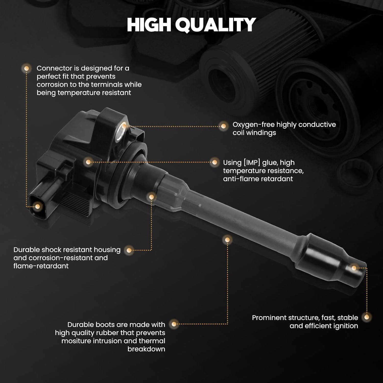 [RESOLVE PROBLEMAS COMUNS DO SISTEMA DE IGNIÇÃO]: As bobinas de ignição HMJXF são eficazes na resolução de problemas comuns, como explosões, falhas de ignição, engasgos, tremores do motor e marcha lenta irregular. Além disso, elas aumentam a potência de saída para um desempenho máximo do motor. Essas bobinas também monitoram a luz de verificação do motor para falhas de circuito e engasgos severos.