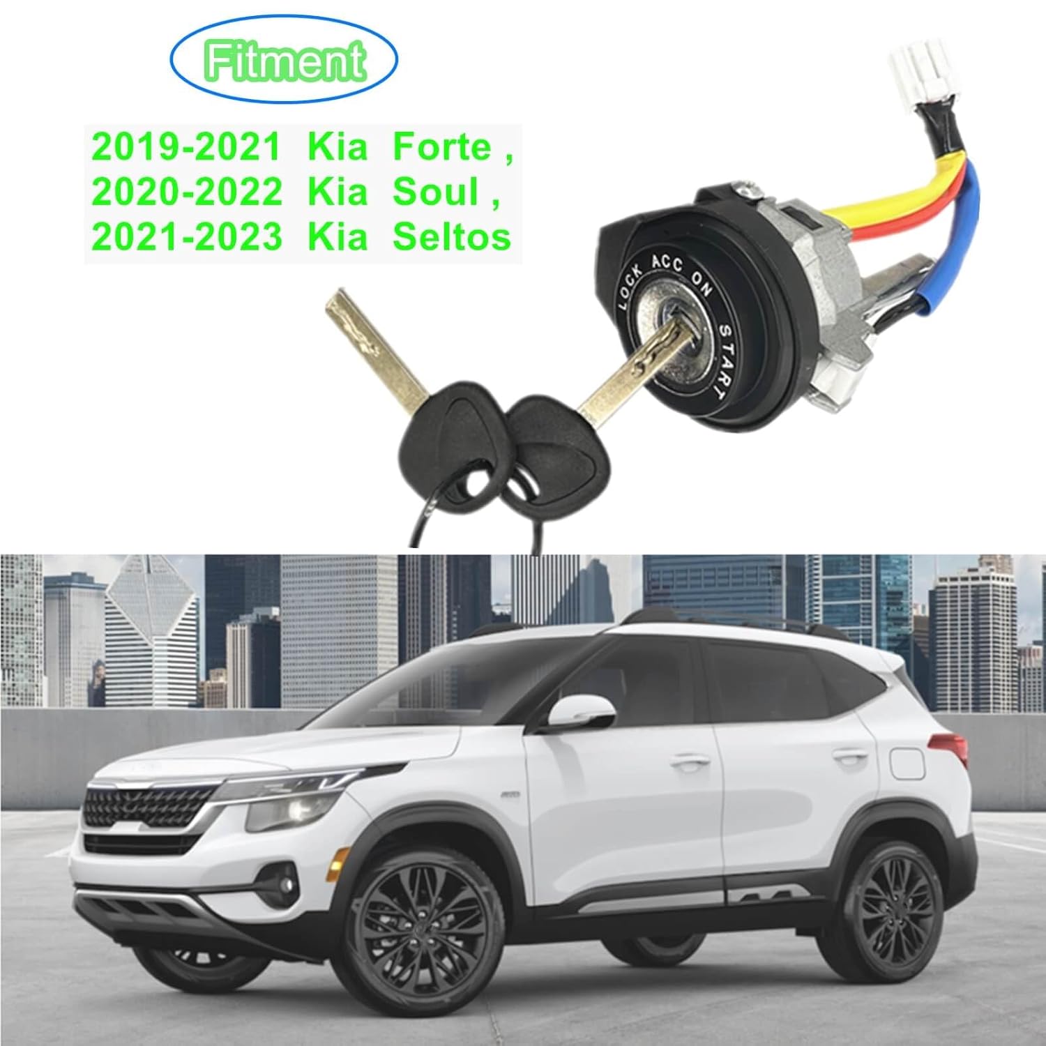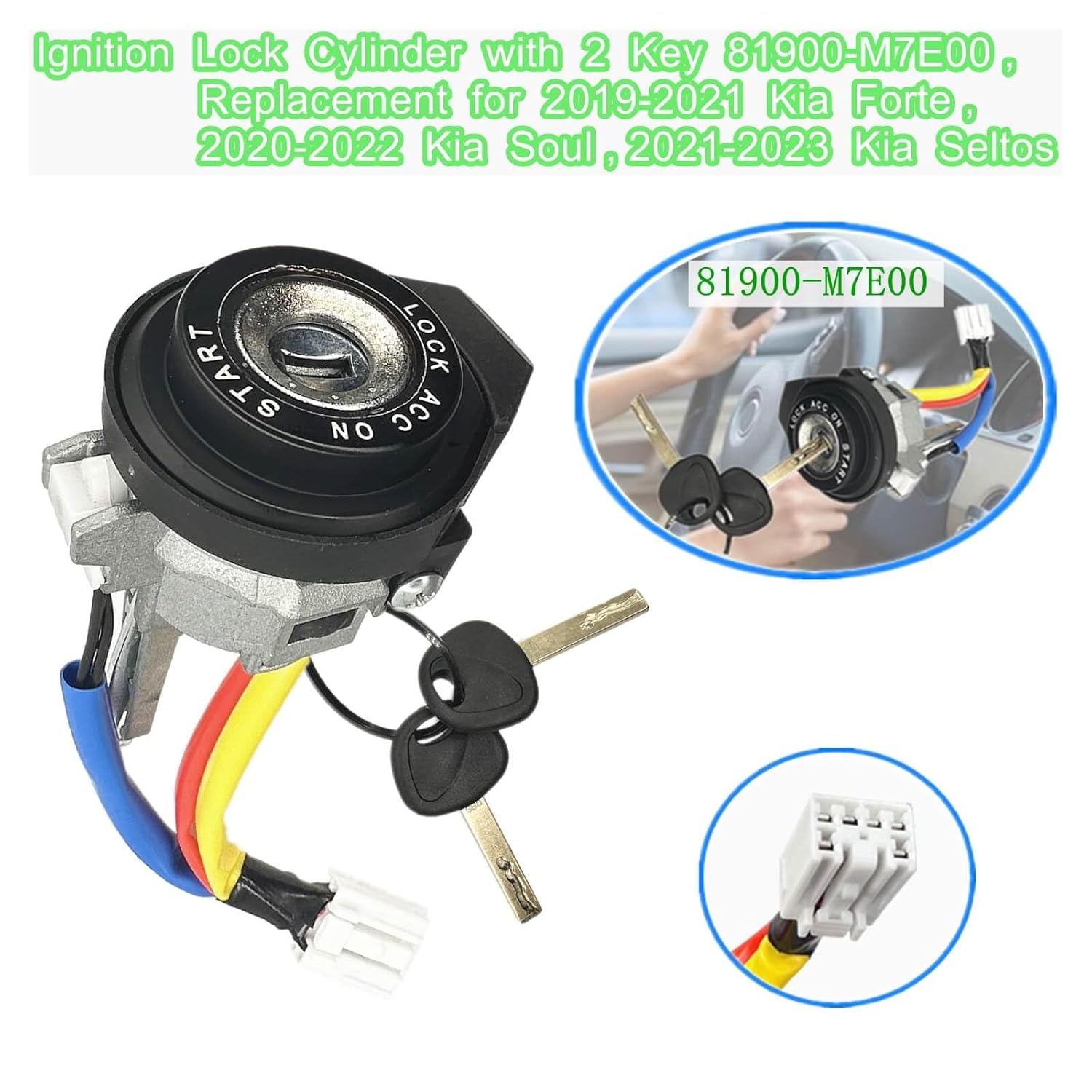 - [Compatível]: Este cilindro de ignição com 2 chaves 81900-M7E00 é compatível com os modelos 2019-2021 Kia Forte, 2020-2022 Kia Soul e 2021-2023 Kia Seltos, garantindo um ajuste perfeito e uma substituição descomplicada.