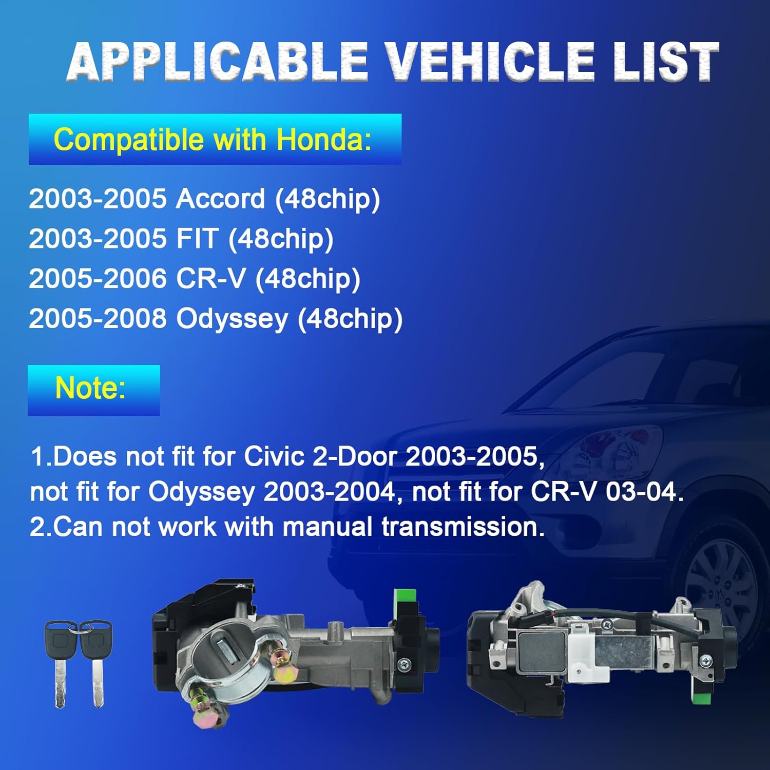 – Não é compatível com Civic 2-Portas 2003-2005, Odyssey 2003-2004, ou CR-V 2003-2004.