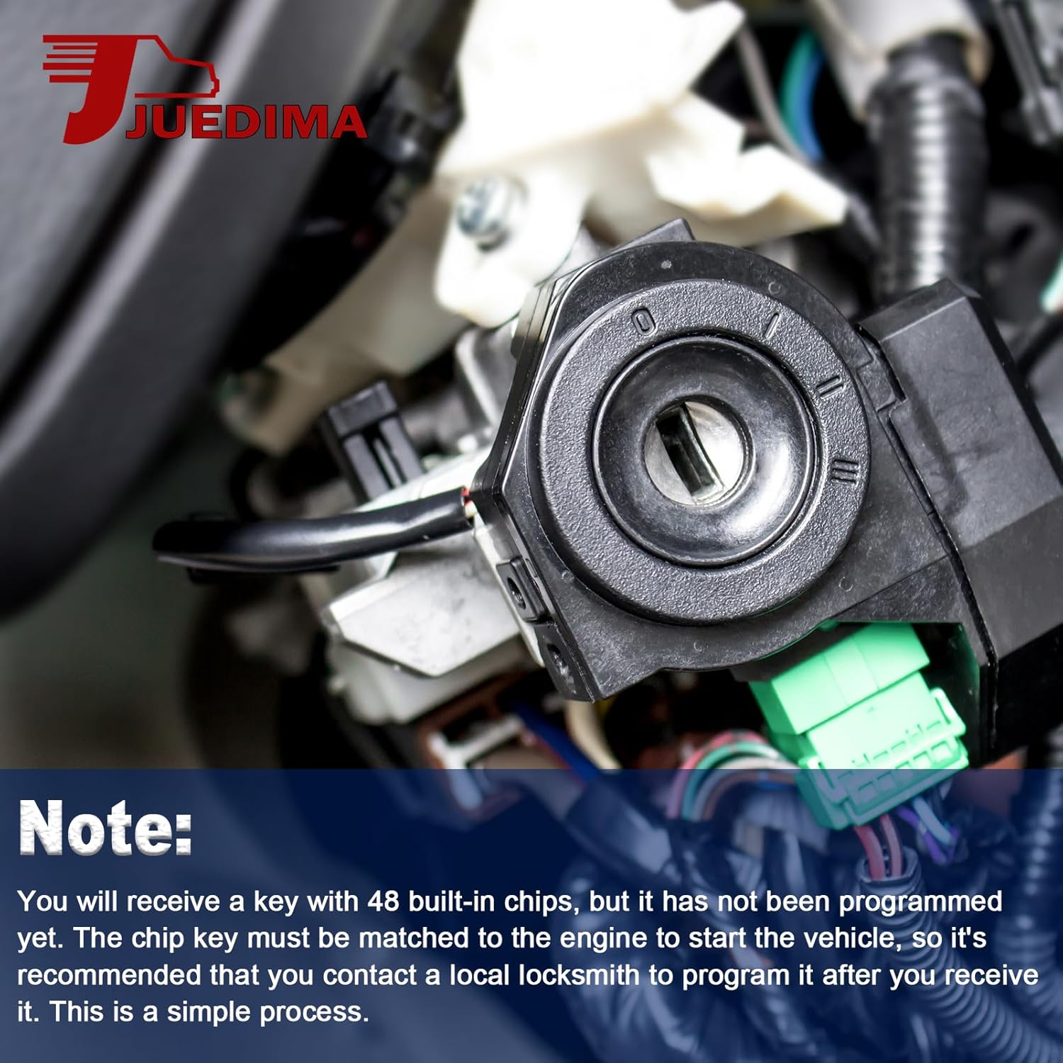 Você receberá uma chave com 48 chips embutidos, mas ela não está programada. O chip da chave deve ser emparelhado com o motor para iniciar o veículo, portanto, recomenda-se que você entre em contato com um chaveiro local para programá-la após o recebimento. Este é um processo simples.