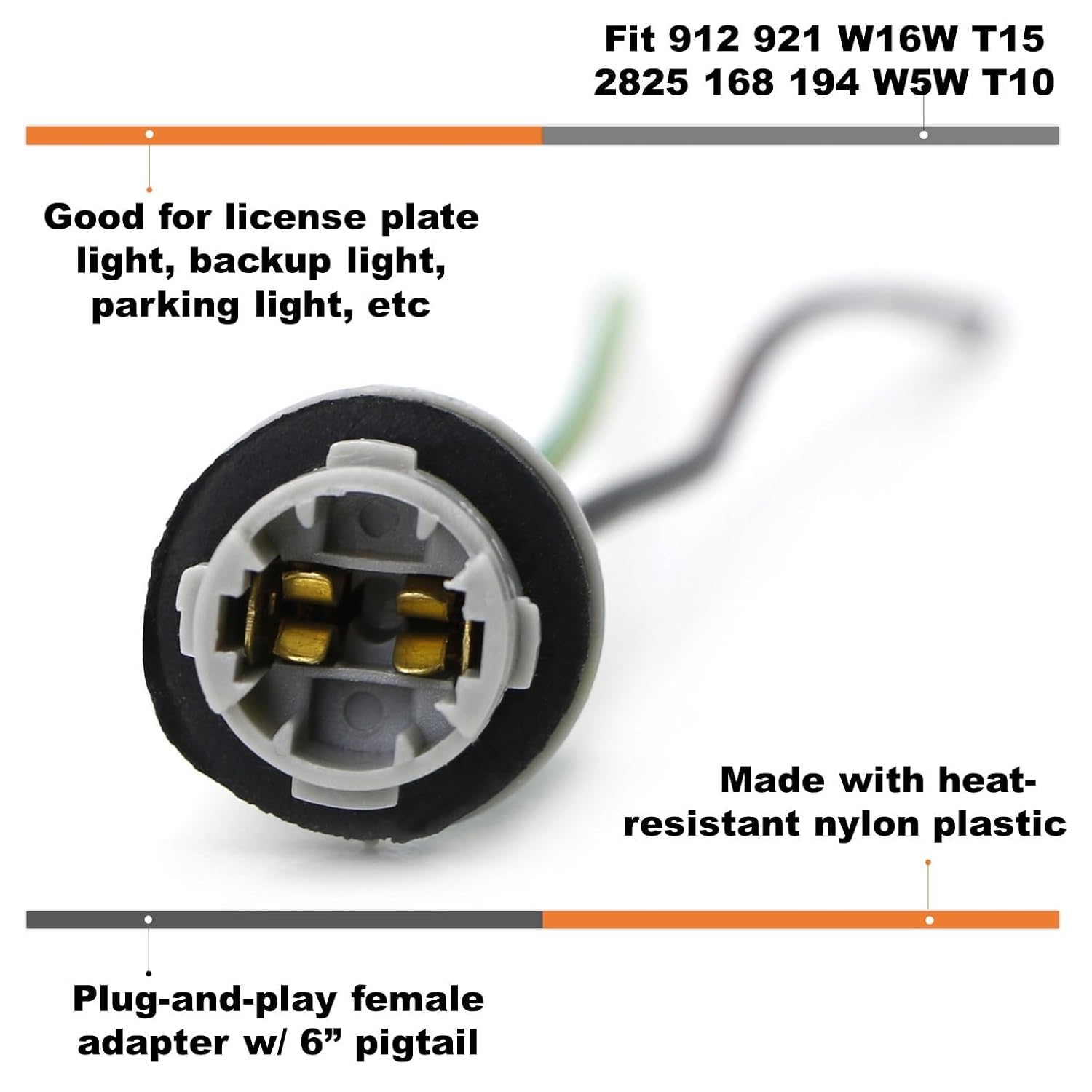 O iJDMTOY 912 920 921 T15 Nylon Base Socket é a solução definitiva para quem busca um sistema de conexão elétrica eficiente e durável. Este produto inovador vem equipado com um par de adaptadores de fiação de 6 polegadas, que apresentam conectores fêmea 912 921 T15 W16W em uma extremidade e dois fios de saída na outra, proporcionando uma instalação simples e prática. A versatilidade deste soquete é notável, pois é compatível com uma ampla gama de tamanhos de lâmpadas, incluindo 168, 194, 175, 2825, W5W, 901, 902, 904, 906, 908, 909, 912, 914, 915, 916, 917, 918, 920, 921, 922, 923, 926, 927, 928, 939 e W16W.