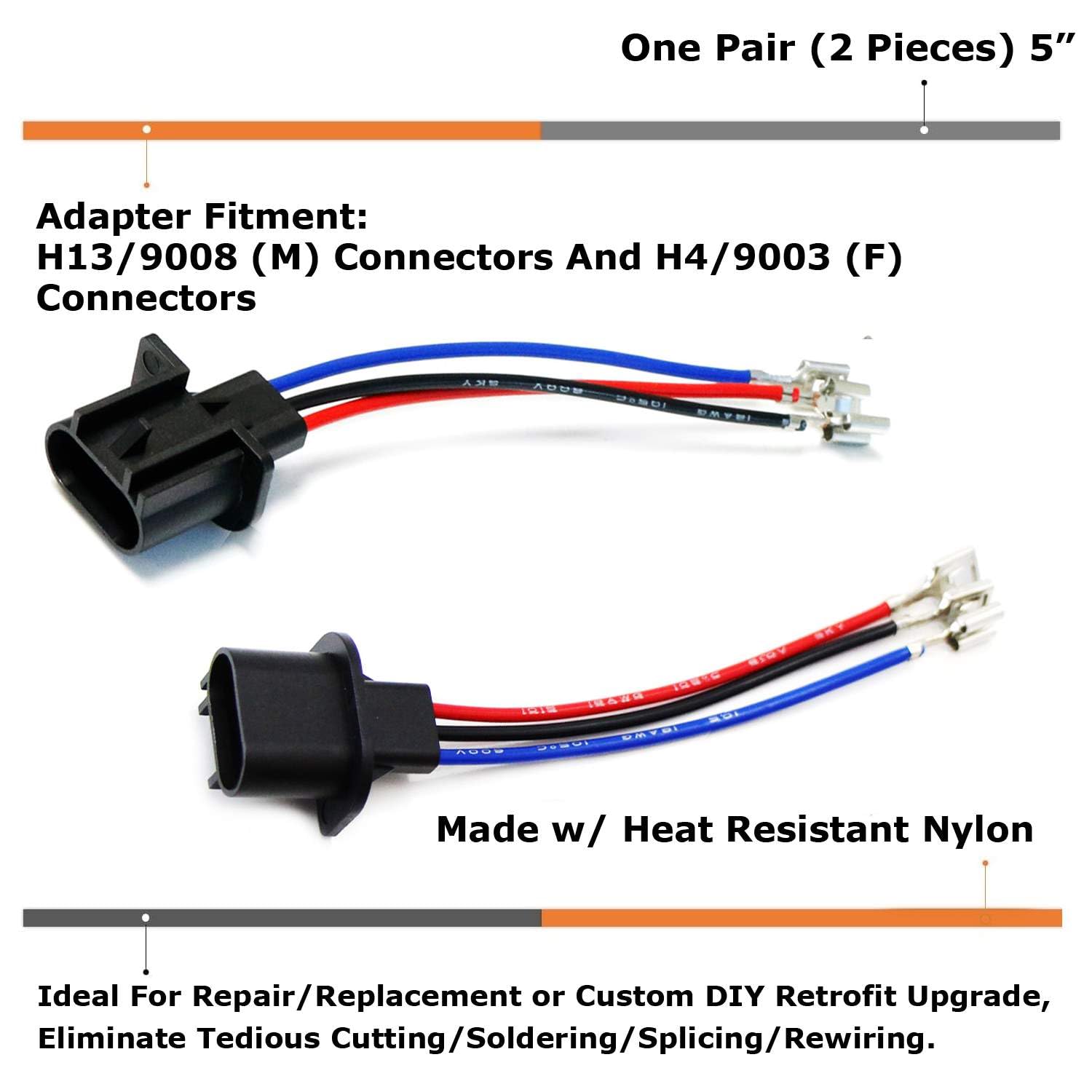 Descrição do Produto: iJDMTOY H13/9008 para 9007/9004 ou 9003/H4 Giboshi Terminal Polarity Adjustable Conversion Adapter Wiring Kit
