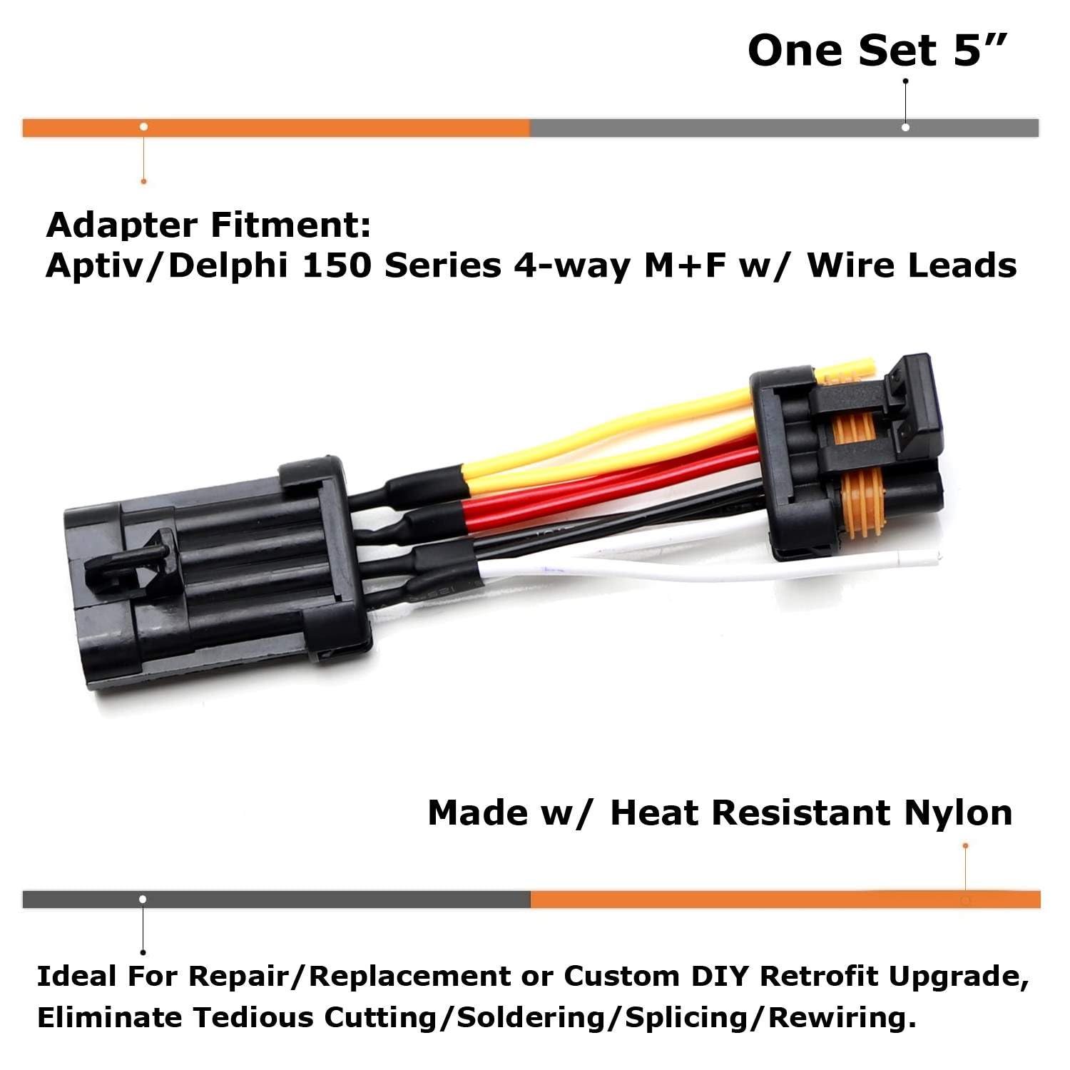 O iJDMTOY Tail Light in-line Accessory Power Harness Plug é a solução ideal para os proprietários de Polaris RZR 900 e 1000, modelos de 2015 a 2018, que desejam expandir suas opções de iluminação sem complicações. Este acessório inovador vem equipado com conectores Aptiv/Delphi da série 150, tanto macho quanto fêmea, e possui saídas de fios de 4 vias, permitindo uma instalação simples e eficiente.