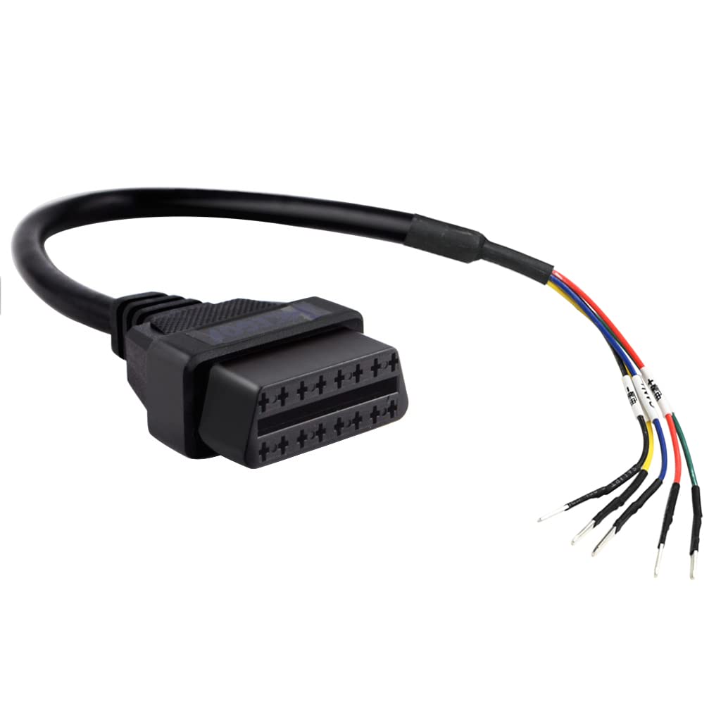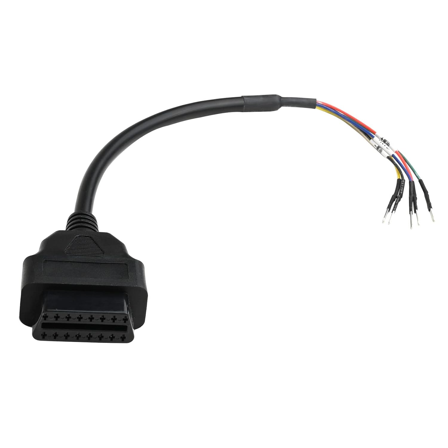 - Conector Fêmea OBDII de 16 Pinos: Este cabo pigtail aberto permite uma conexão direta e segura com o sistema de diagnóstico do veículo, facilitando a leitura de códigos de erro e a realização de testes.