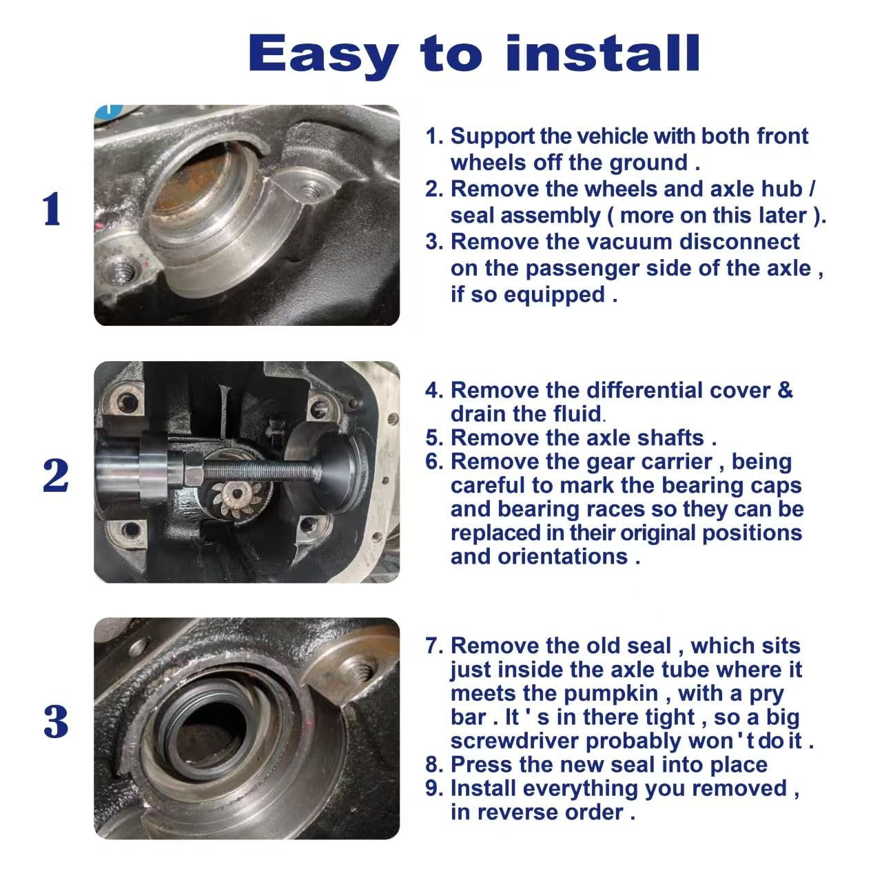 A Ferramenta de Instalação de Selo Lateral Interno é a solução definitiva para mecânicos e entusiastas automotivos que buscam eficiência e precisão na instalação de selos em eixos Dana 30, 44 e 60, além de diferenciais dianteiros. Este produto especializado foi projetado para facilitar a instalação de selos laterais internos, garantindo um ajuste perfeito e uma vedação eficaz, essencial para o desempenho do veículo.
