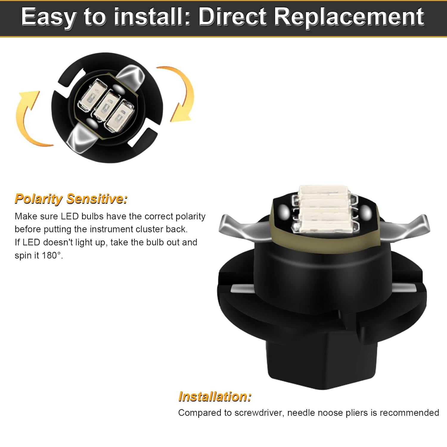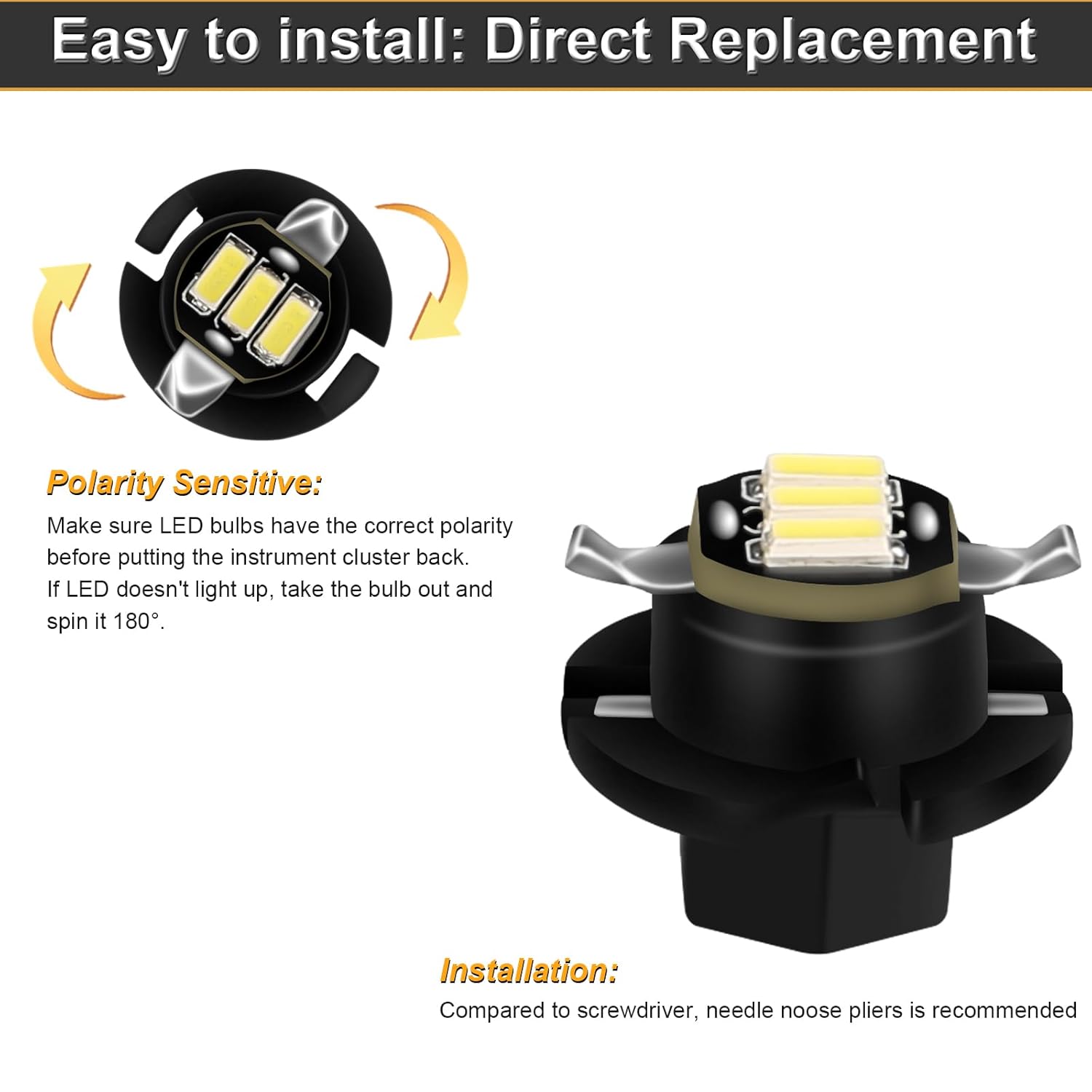 - Alta Brilho: Cada lâmpada é equipada com três chips LED SMD de alta luminosidade, proporcionando um brilho ideal para o seu painel de instrumentos e cabine, melhorando a visibilidade e a estética do seu veículo.