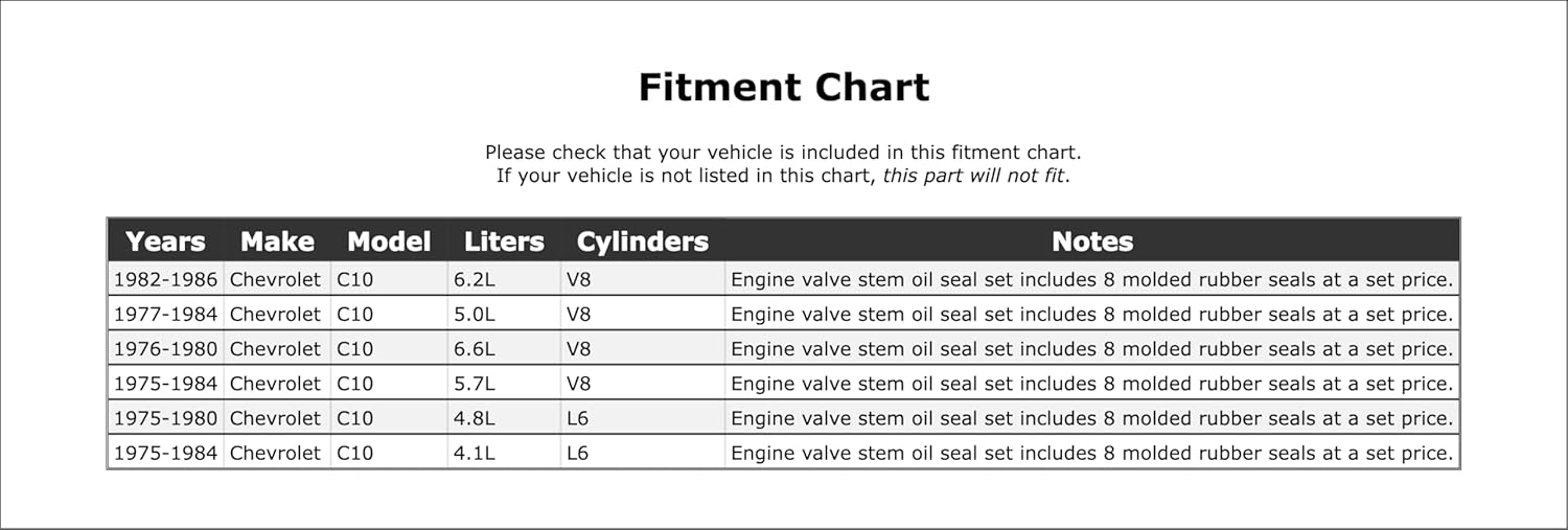 O Conjunto de Selos de Óleo do Stem da Válvula do Motor é a solução ideal para quem busca qualidade e desempenho excepcionais para os modelos Chevrolet C10 de 1980 a 1986. Este conjunto inclui 1 (um) selo de óleo do stem da válvula do motor, projetado especificamente para as válvulas de admissão e escape, garantindo que seu motor funcione de maneira eficiente e sem vazamentos.