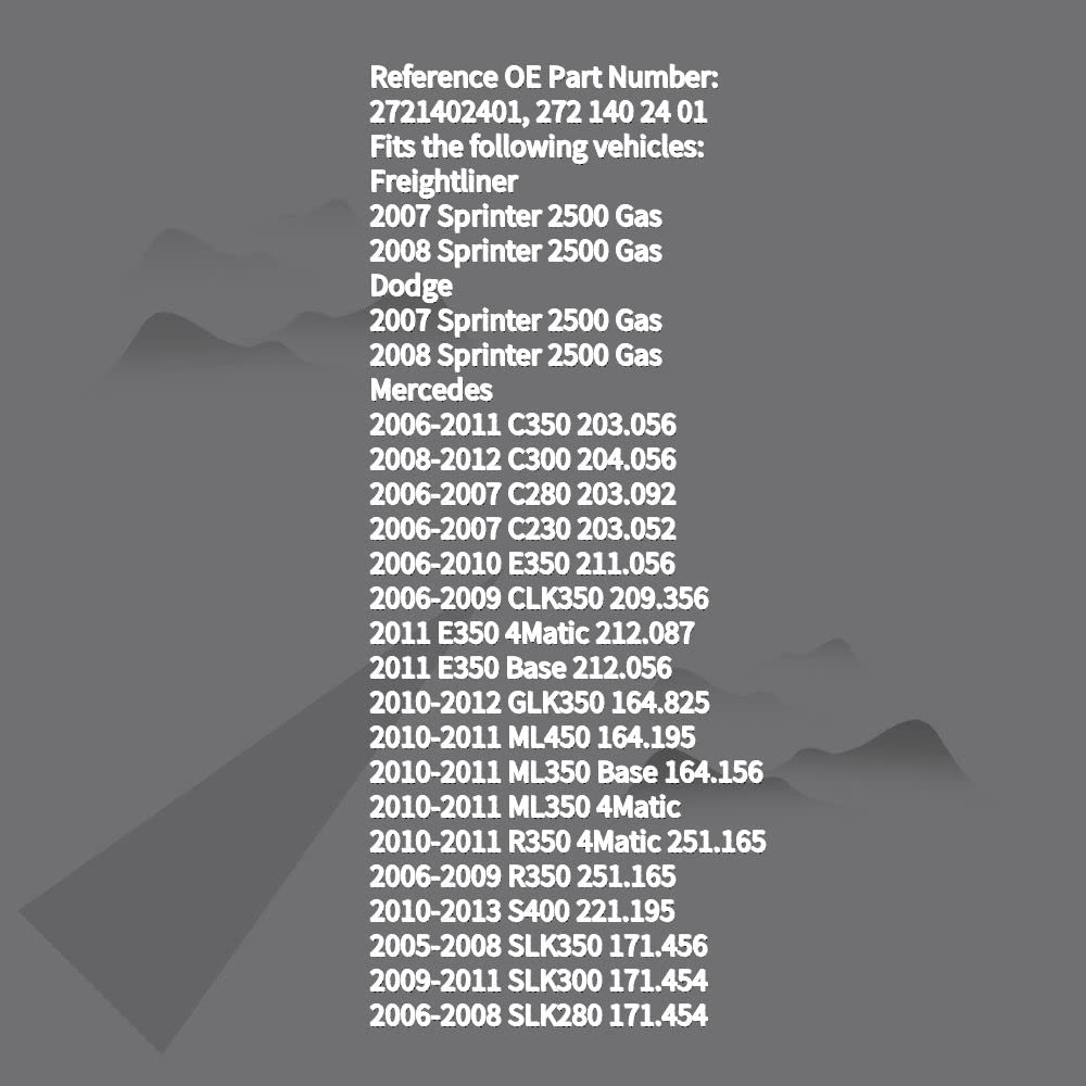 – Compatibilidade: Este kit é compatível com uma ampla gama de veículos, incluindo Freightliner Sprinter 2500 Gas, Dodge Sprinter 2500 Gas, e diversos modelos da Mercedes-Benz, como C230, C280, C300, C350, CLK350, E350, GLK350, ML350, ML450, R350, S400, SLK280, SLK300 e SLK350.