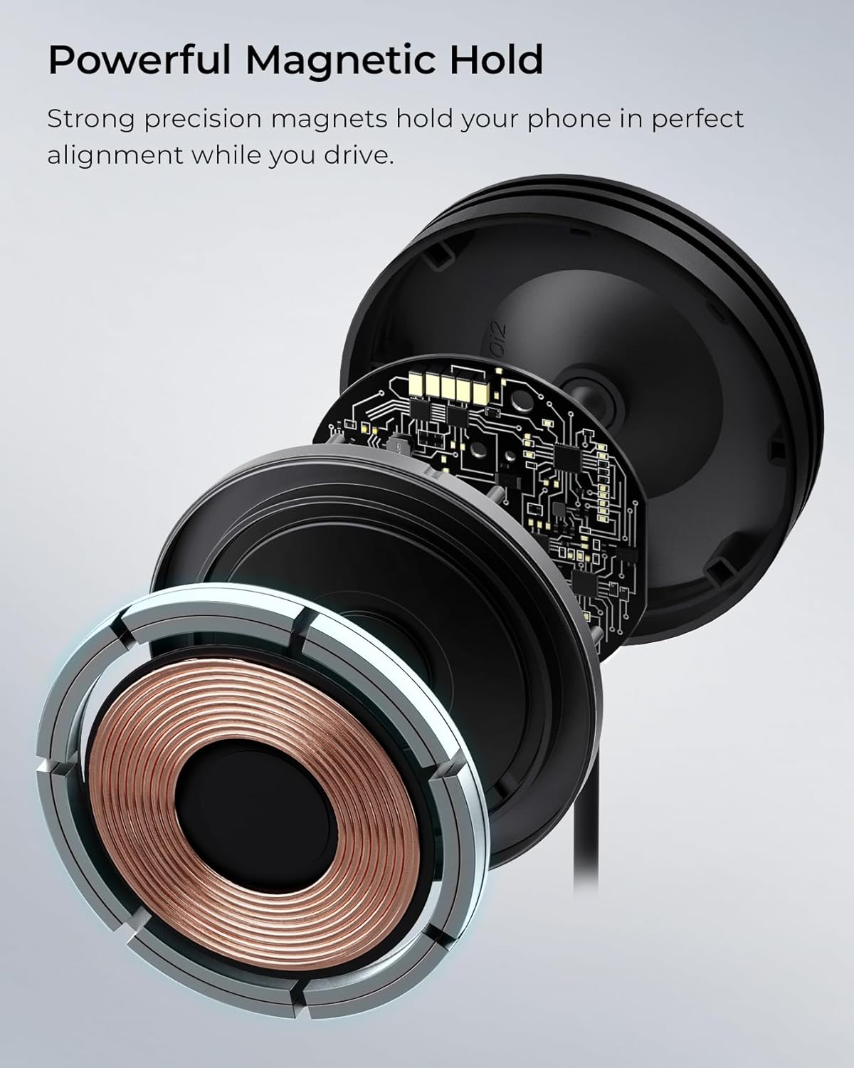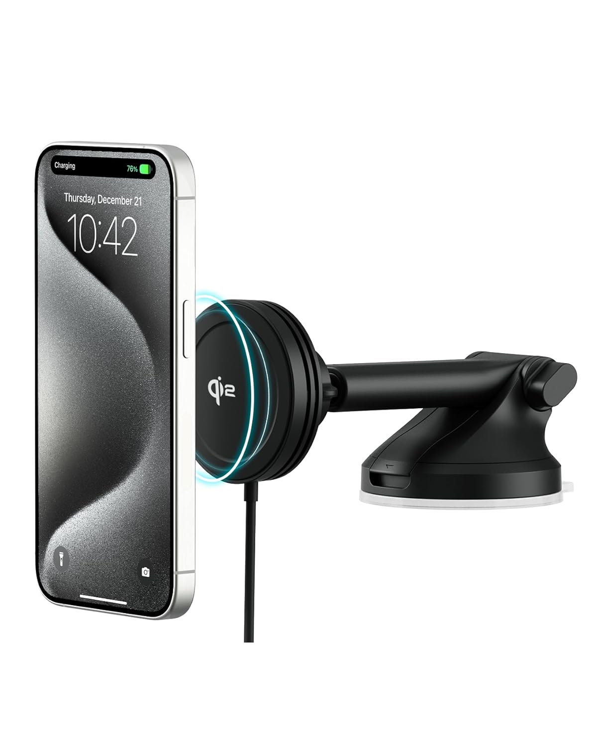 Projetado especificamente para dispositivos habilitados para Qi2 e iPhones com MagSafe, como os modelos iPhone 12, 13, 14, 15 e 16, o Velox Qi2 Mini é ideal para quem utiliza capas oficiais MagSafe ou compatíveis. A segurança do seu smartphone é garantida por poderosos ímãs N52 integrados, que mantêm o aparelho firmemente no lugar, enquanto a superfície de montagem é revestida com silicone macio e antiderrapante, proporcionando uma conexão suave e segura.