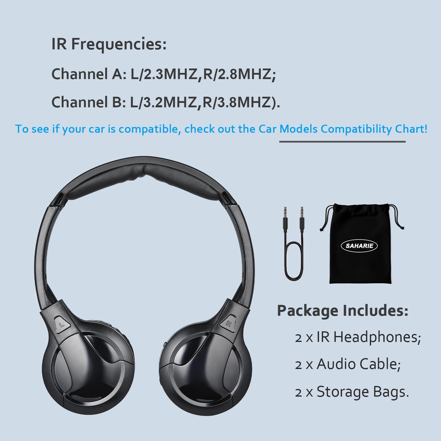 Pacote com 2 Unidades: O conjunto inclui 2 fones de ouvido sem fio para DVD de carro, 2 cabos de áudio de 3,5 mm e 2 bolsas de armazenamento. Ao escolher a SAHARIE, você conta com uma garantia de 12 meses e 100% de satisfação do cliente.