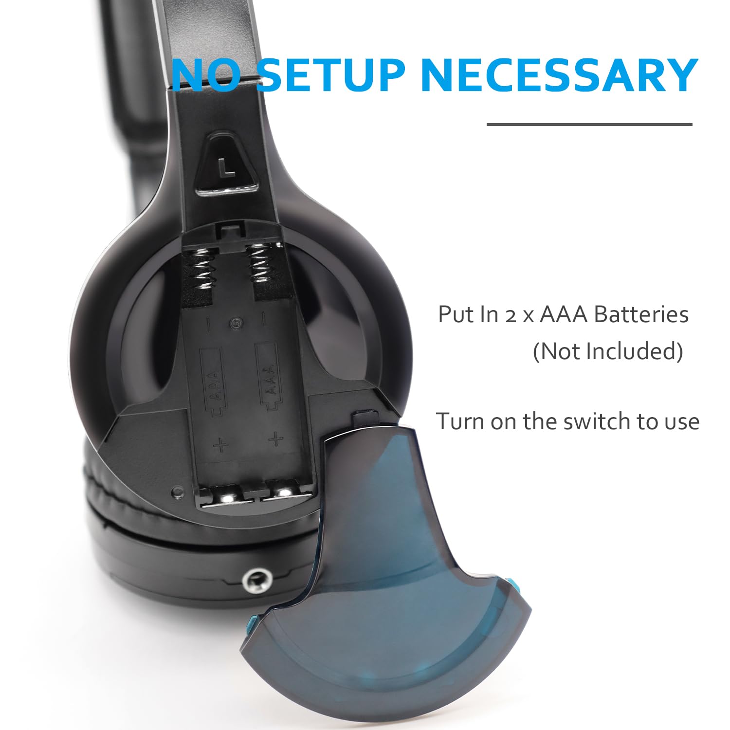 1. Insira duas pilhas AAA em cada fone de ouvido.