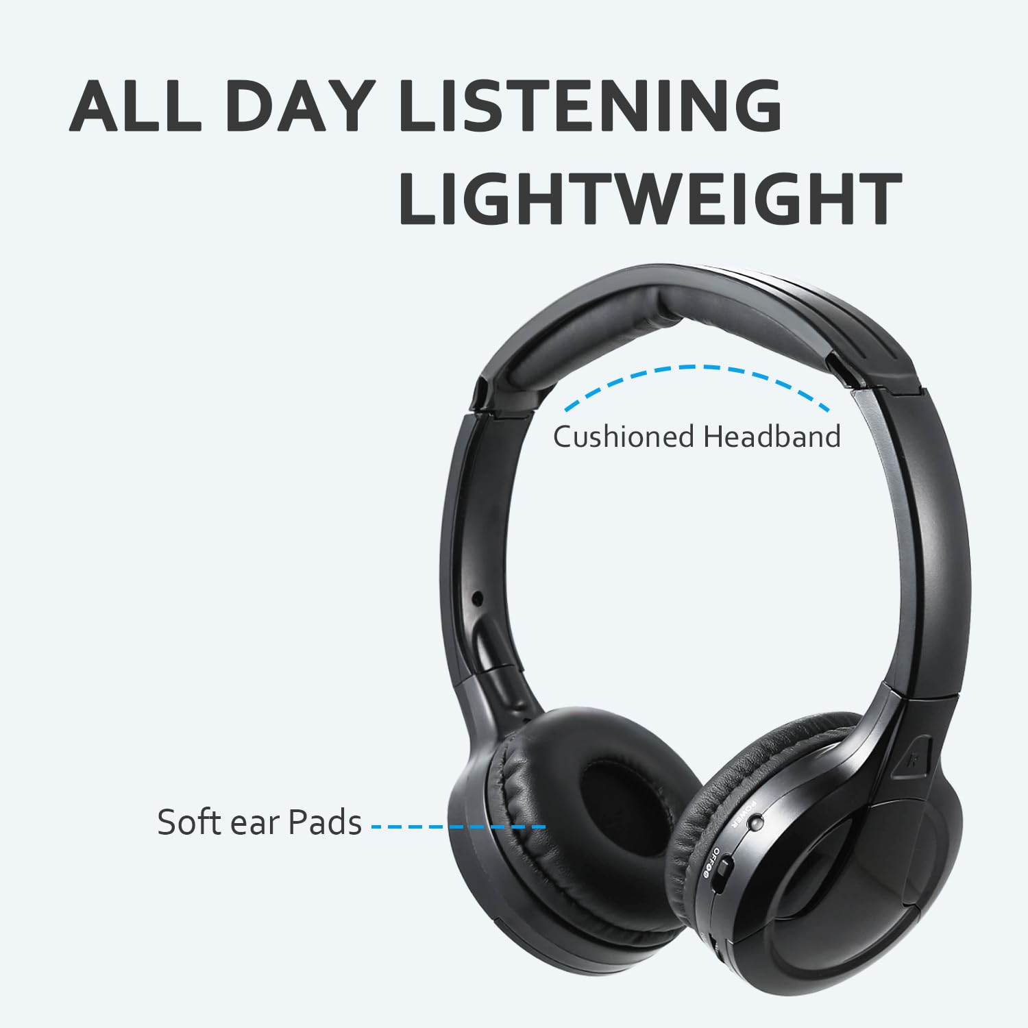 Fácil de Usar: Com um design leve e confortável, os fones de ouvido possuem uma faixa de cabeça e almofadas ajustáveis, proporcionando um ajuste perfeito para todos os usuários. Basta inserir duas pilhas AAA (não incluídas), selecionar o canal correspondente e você estará pronto para aproveitar sua música ou filme favorito em questão de segundos.
