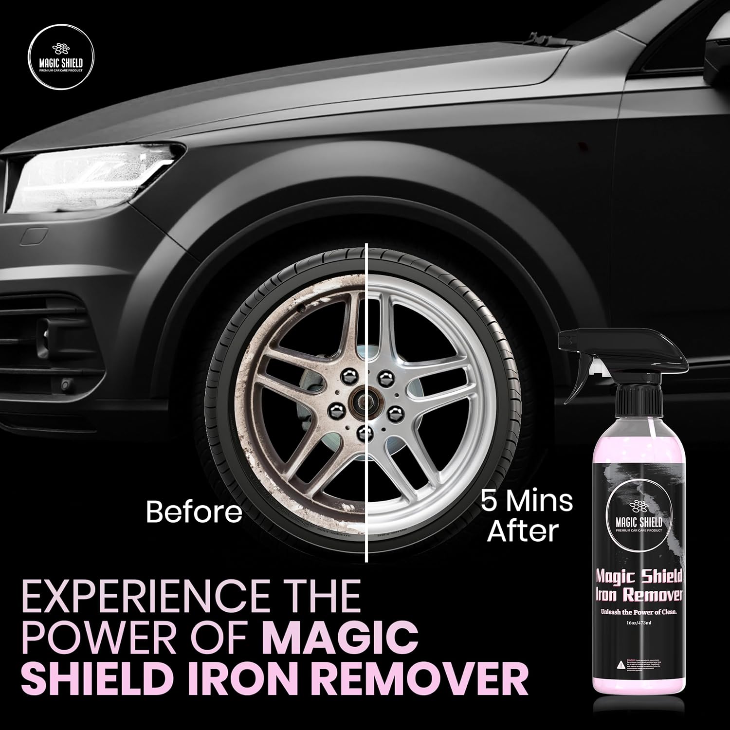 I recently used the Magic Shield Iron Remover on my car, and I’m impressed with the results. My wheels were covered in brake dust and iron deposits that regular cleaning couldn’t handle. After applying this product, I could see the contaminants reacting and dissolving right before my eyes. It’s super easy to use—just spray it on, let it sit for a few minutes, and rinse off. The iron remover did an excellent job of breaking down tough deposits without any scrubbing, leaving my wheels looking brand new.