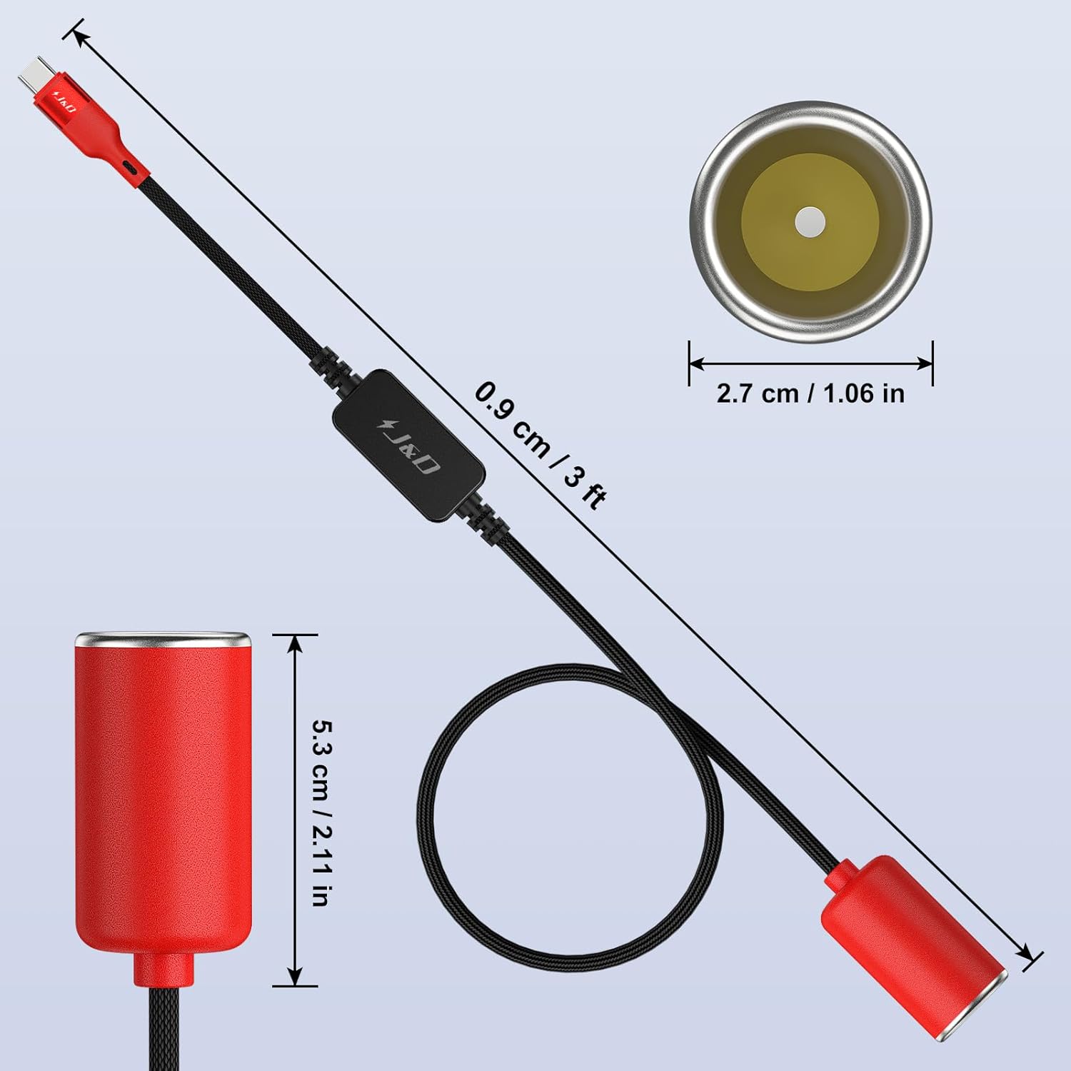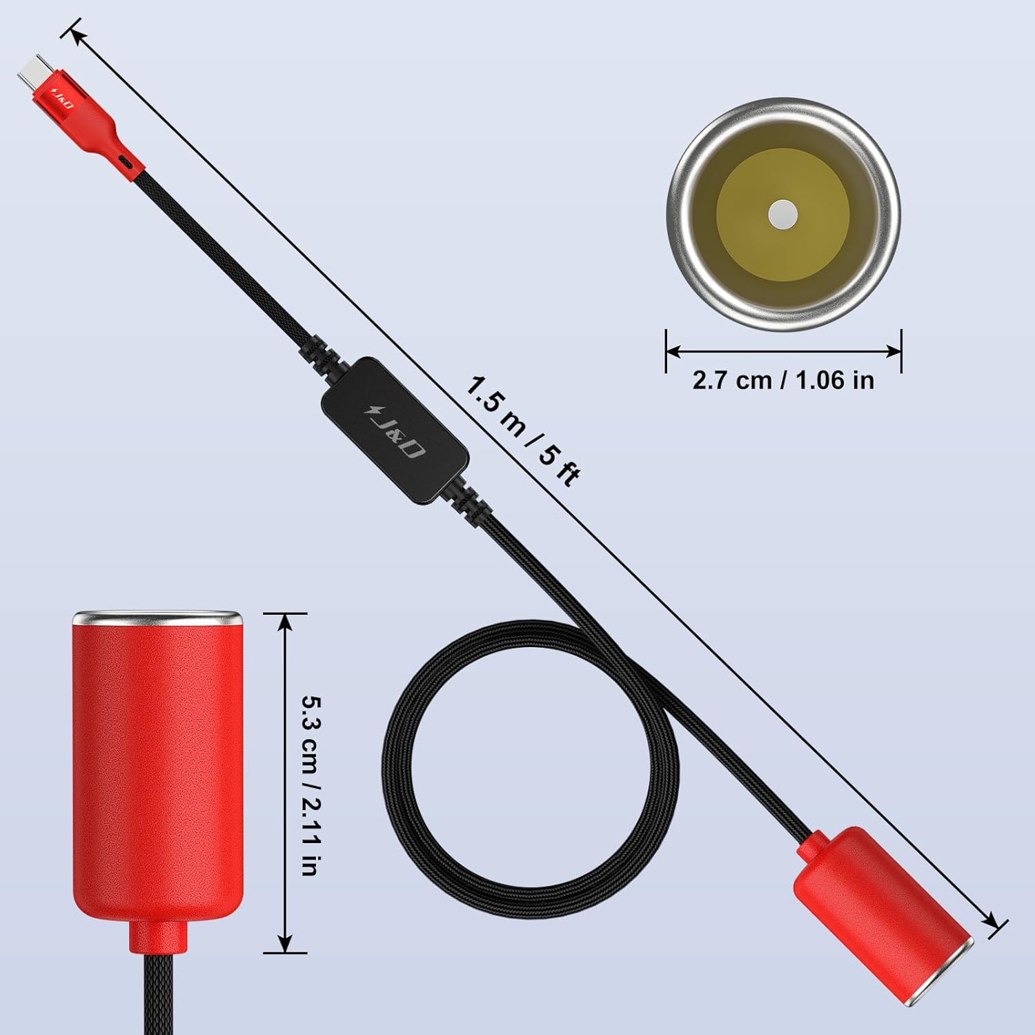 Descrição do Produto: Adaptador J&D USB C para Soquete de Isqueiro de Carro 12V