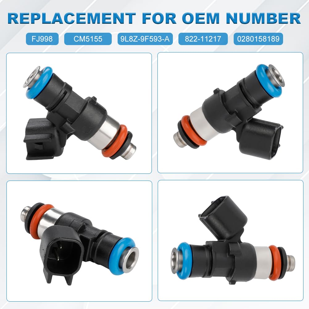 - Substituição de Número OE: Os injetores são uma substituição direta para os números de peça 0280158189, FJ998, 822-11217, 9L8Z-9F593-A e CM5155, garantindo compatibilidade e desempenho.