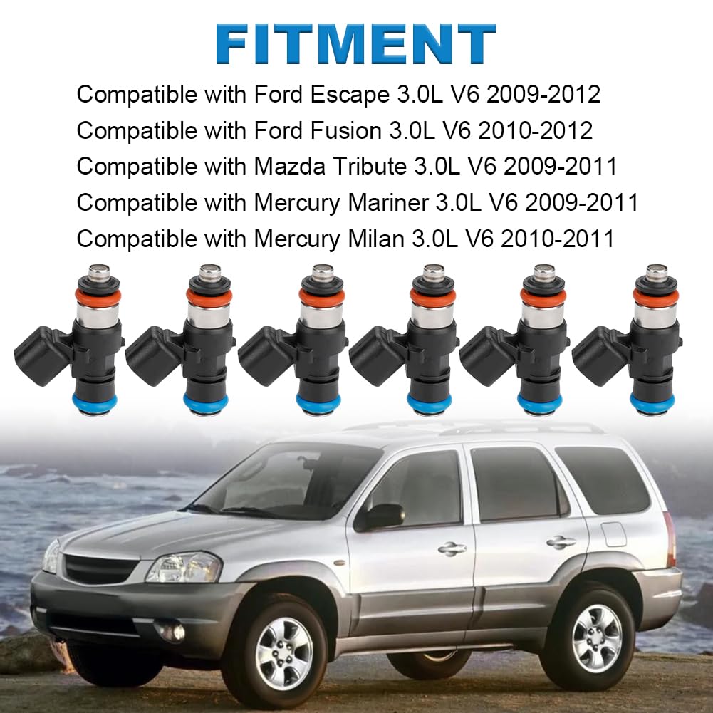 - Compatibilidade: Os injetores JDMON são compatíveis com os modelos Ford Escape 3.0L V6 (2009-2012), Fusion 3.0L V6 (2009-2012), Mazda Tribute 3.0L V6 (2009-2011), Mercury Mariner 3.0L V6 (2009-2011) e Milan 3.0L V6 (2009-2011).
