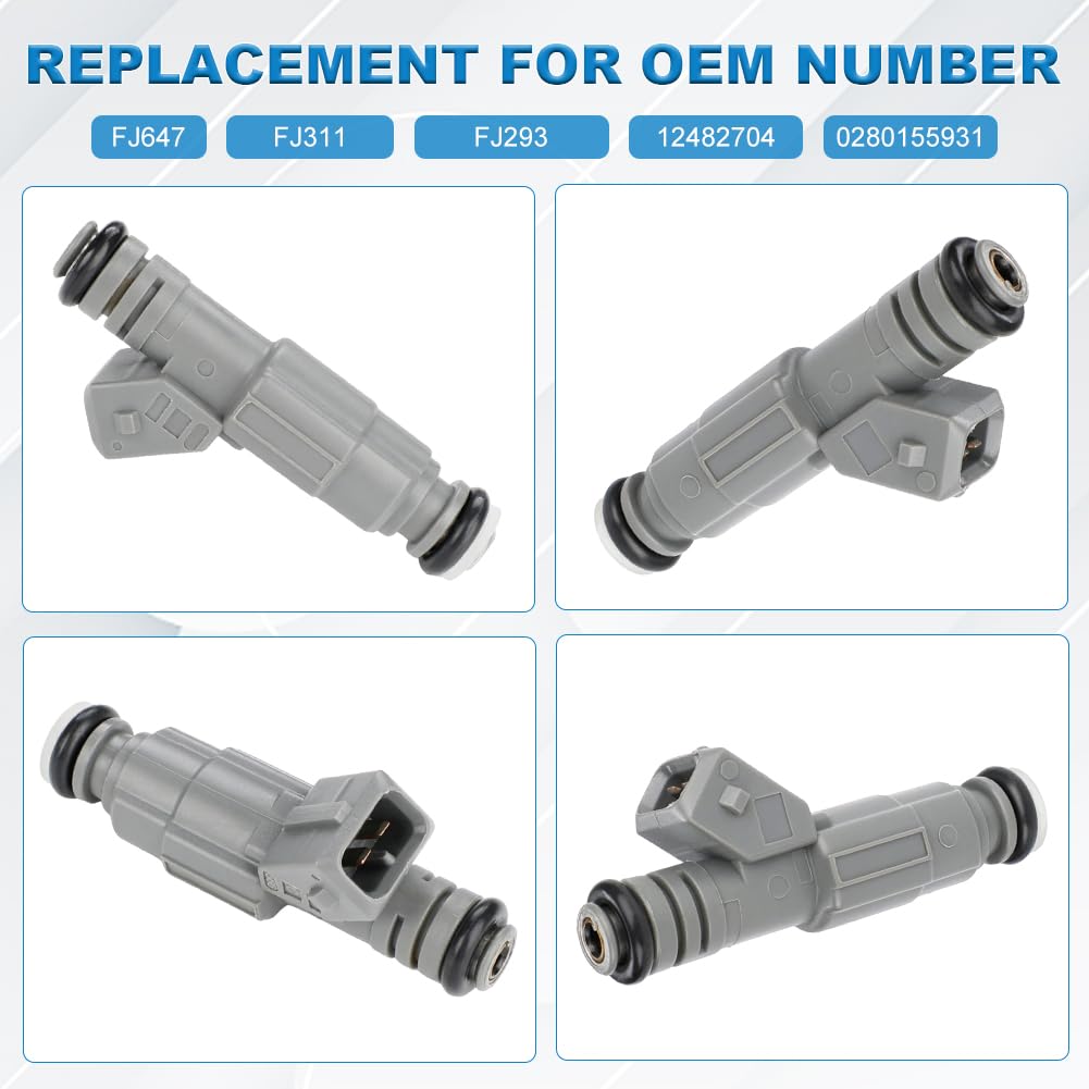 – Firebird 5.7L V8 (1998, 2001-2002) - Substituição de Número OE: Os injetores são substitutos diretos para os números de peça FJ647, 0280155931, 12482704, FJ293 e FJ31, garantindo que você tenha a peça correta para o seu veículo.