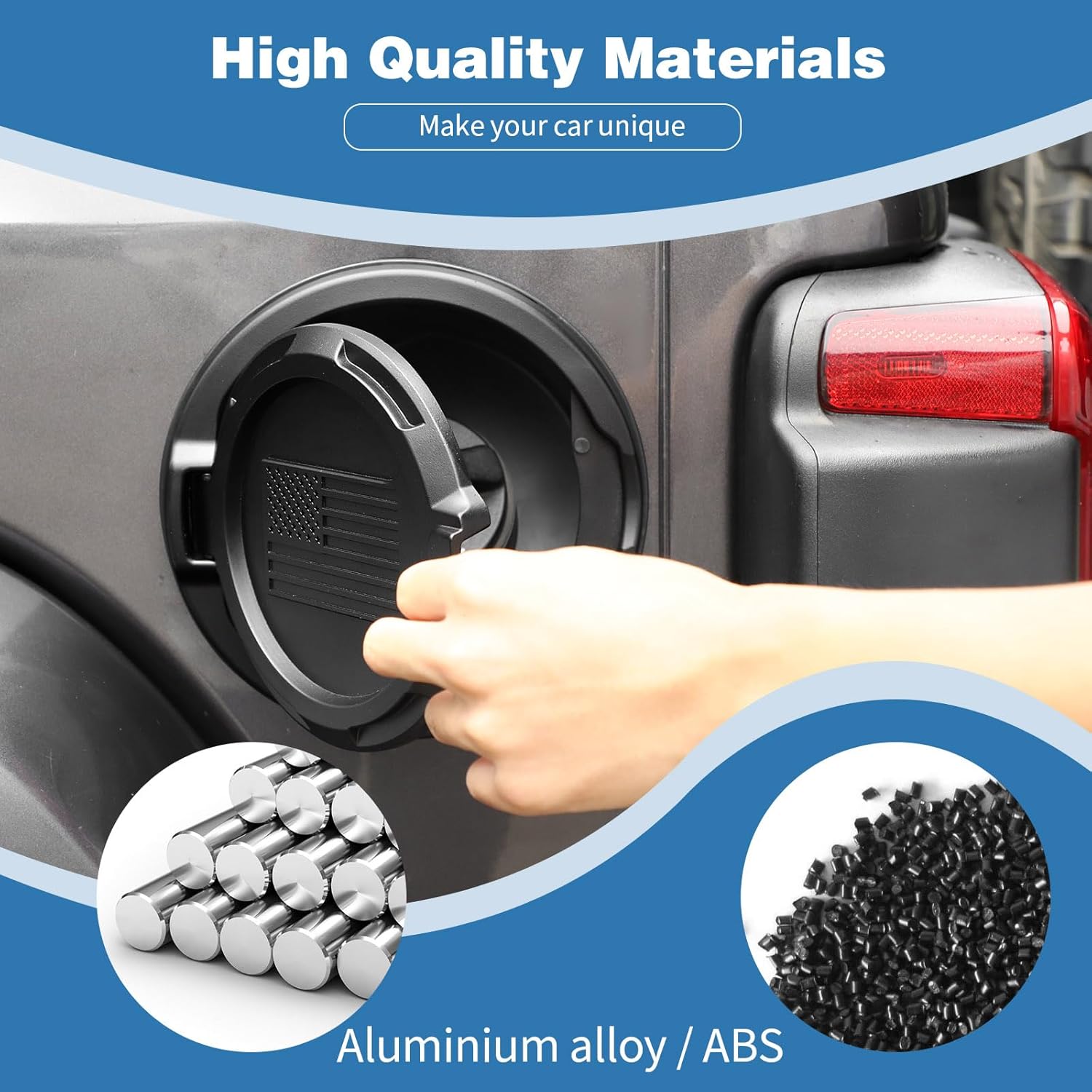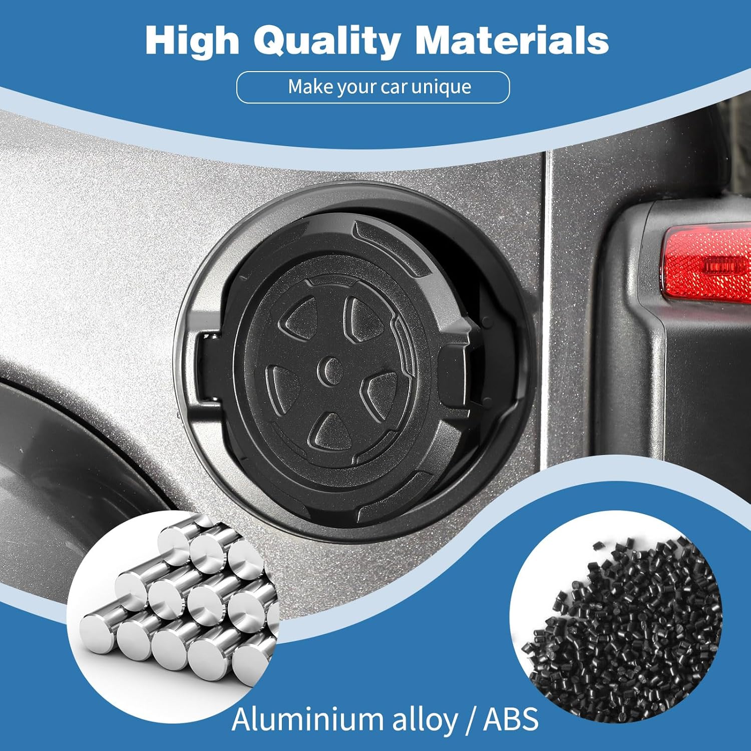Alta Qualidade: Fabricada com uma estrutura de alumínio de alta qualidade e base em ABS, esta tampa oferece estabilidade e resistência quando montada. O revestimento em preto de alta qualidade não só proporciona um visual elegante, mas também resiste à ferrugem e à corrosão, garantindo que seu Jeep mantenha sua aparência impecável por muito mais tempo.